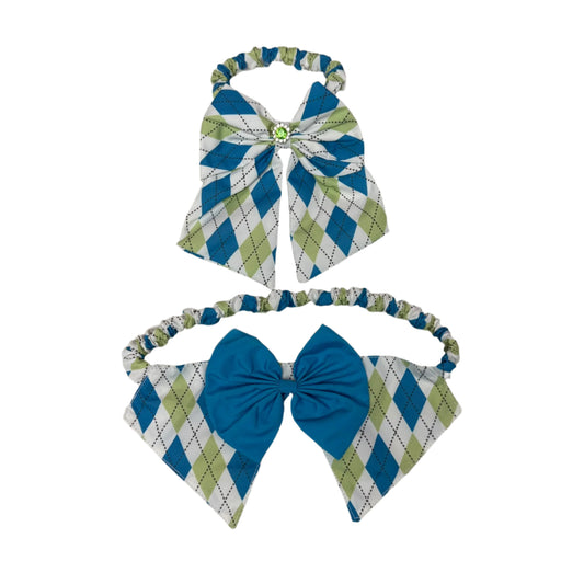 ARGYLE BLUE/GREEN BOW TIE WITH TAILS - 4 PACK