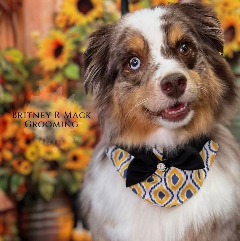 This 4 pack of Big Girl Gold and Grey Bibs is the perfect way to keep your furry friends looking their best. These adjustable bibs fit medium to large dogs, with an adjustable elastic strap offering easy adjustments from 9-20 inches. Let your pups leave the grooming salon with doggy couture that's as stylish as it is practical.