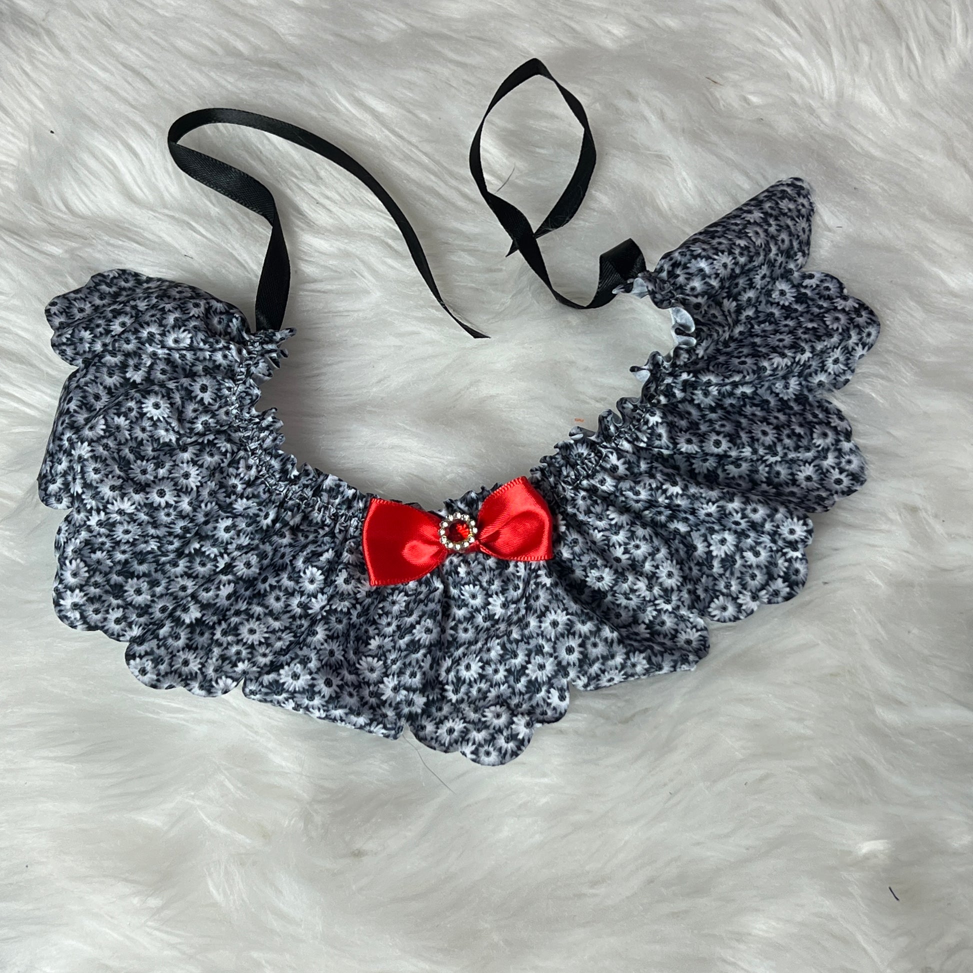 Enhance your grooming salon with this 5 pack of Black and White Daisy Tie On Ruffle S/M. These accessories not only add a touch of style, but also feature a versatile tie on band that fits neck sizes from 9-20 inches. Perfect for your furry clients!