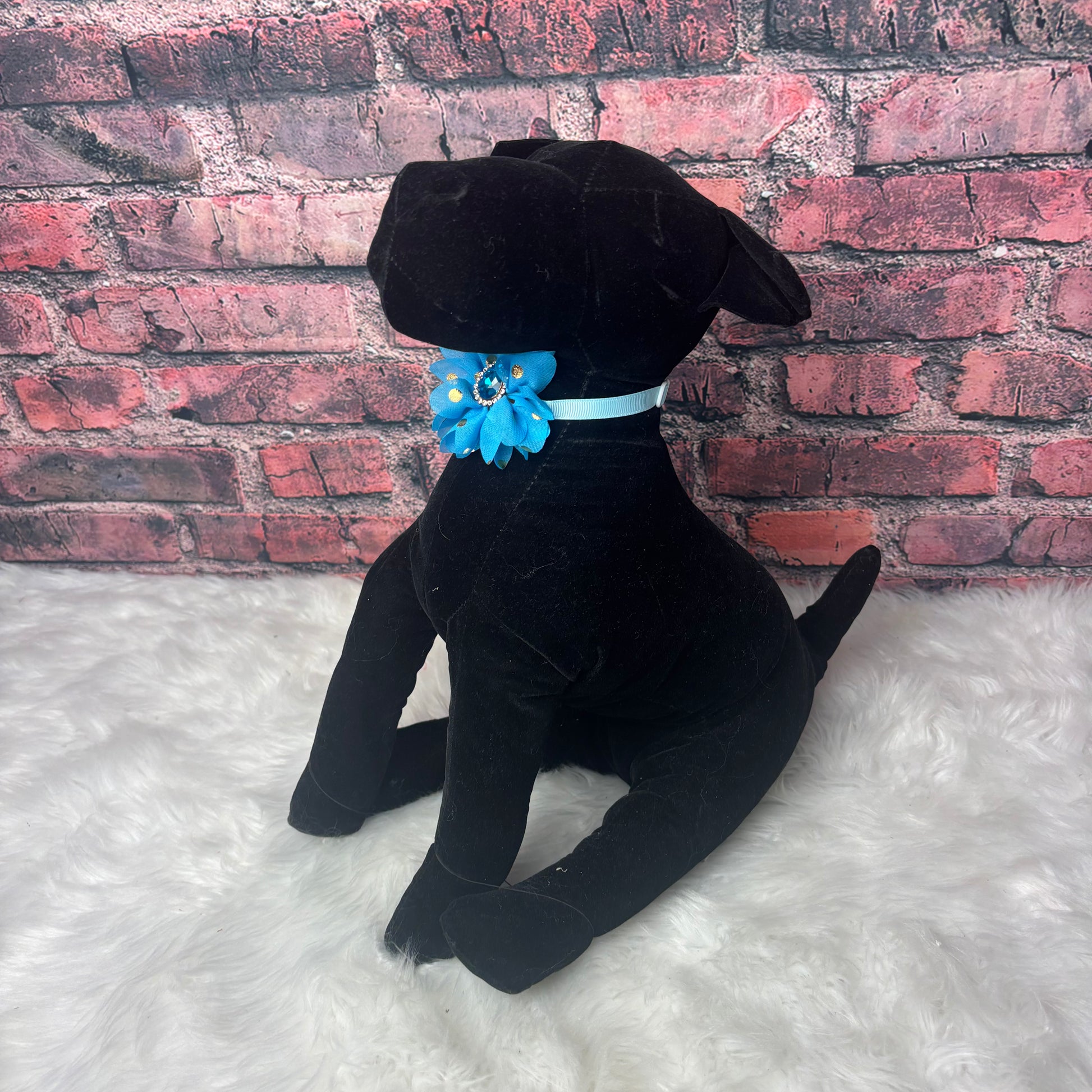 Upgrade your dog's grooming game with our stunning BLUE W/ GOLD DOTS RHINESTONE FLOWER NECKBAND! The adjustable band with clasp ensures a perfect fit, while the eye-catching blue and gold design will make your pup stand out. A must-have accessory for any dog grooming salon.