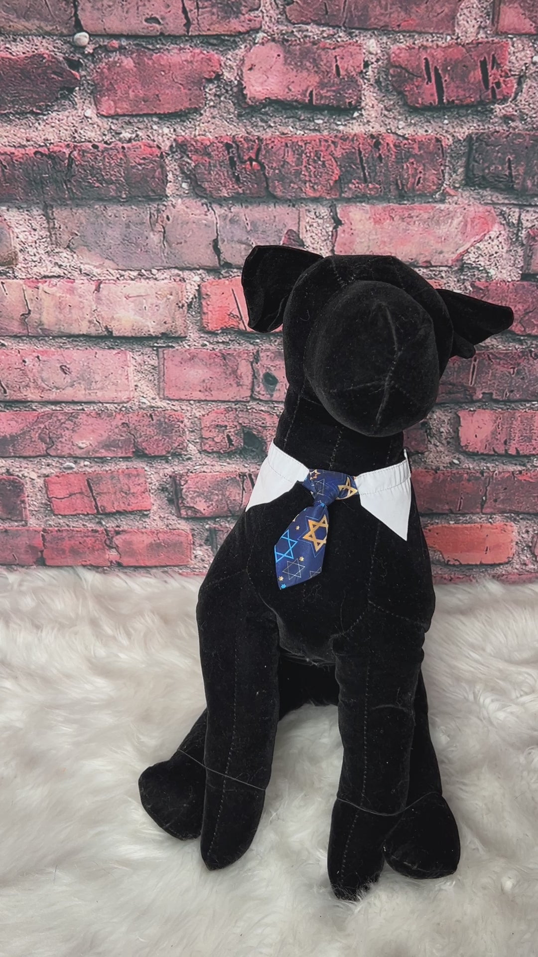 This pack of six Dark Blue Hanukkah shirt collars and ties are perfect for your furry friends. The stretchy adjustable elastic band ensures a comfortable fit for most breeds, making it a versatile grooming salon accessory. Give your pets a stylish look during the holiday season with this pack.