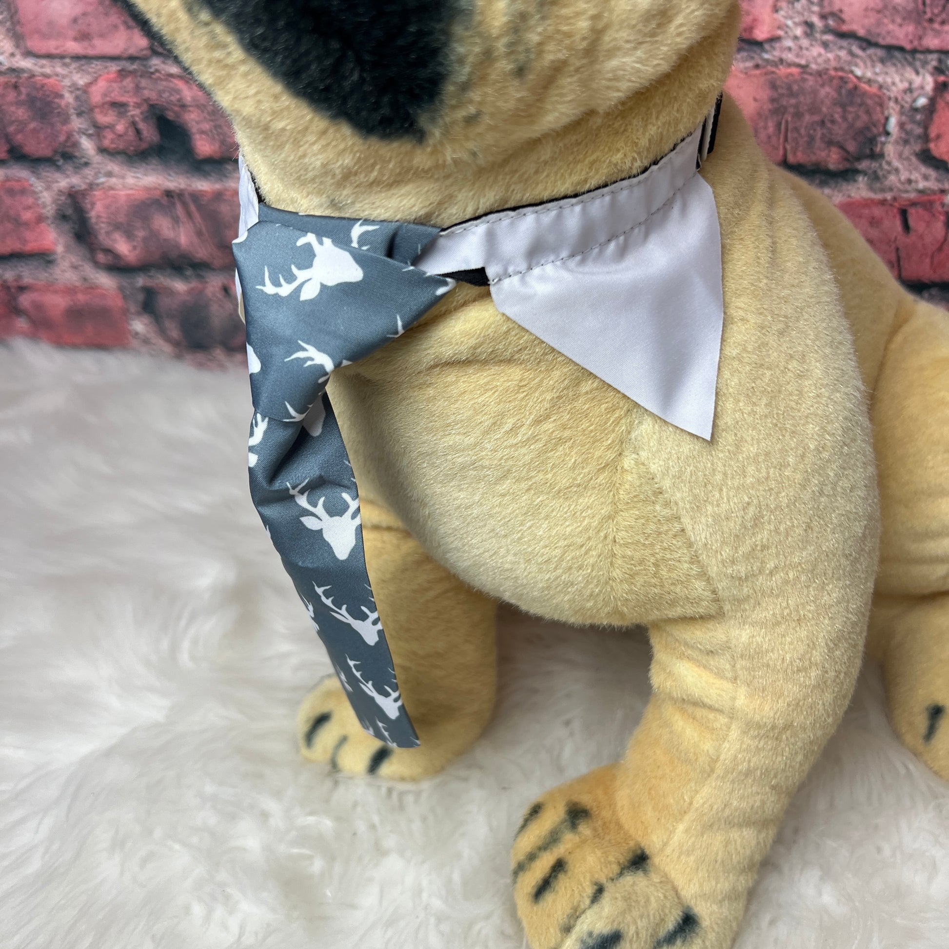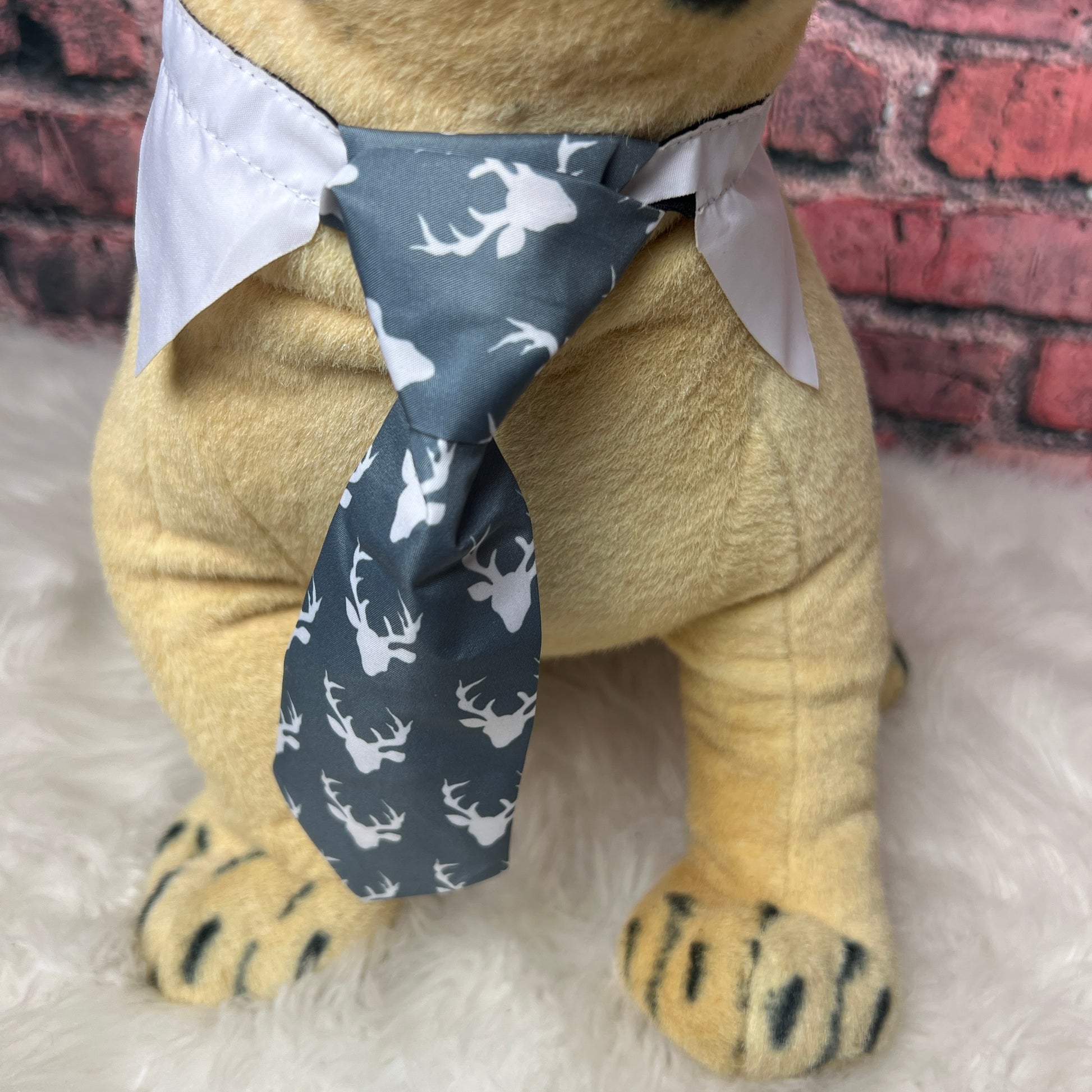 Get ready for a dapper look with our DEER ON GREY SHIRT COLLAR AND TIE. Made with high-quality DEER PRINT FABRIC, this grooming salon essential will elevate your style game while ensuring a perfect fit with its adjustable design for neck sizes 14"-28".