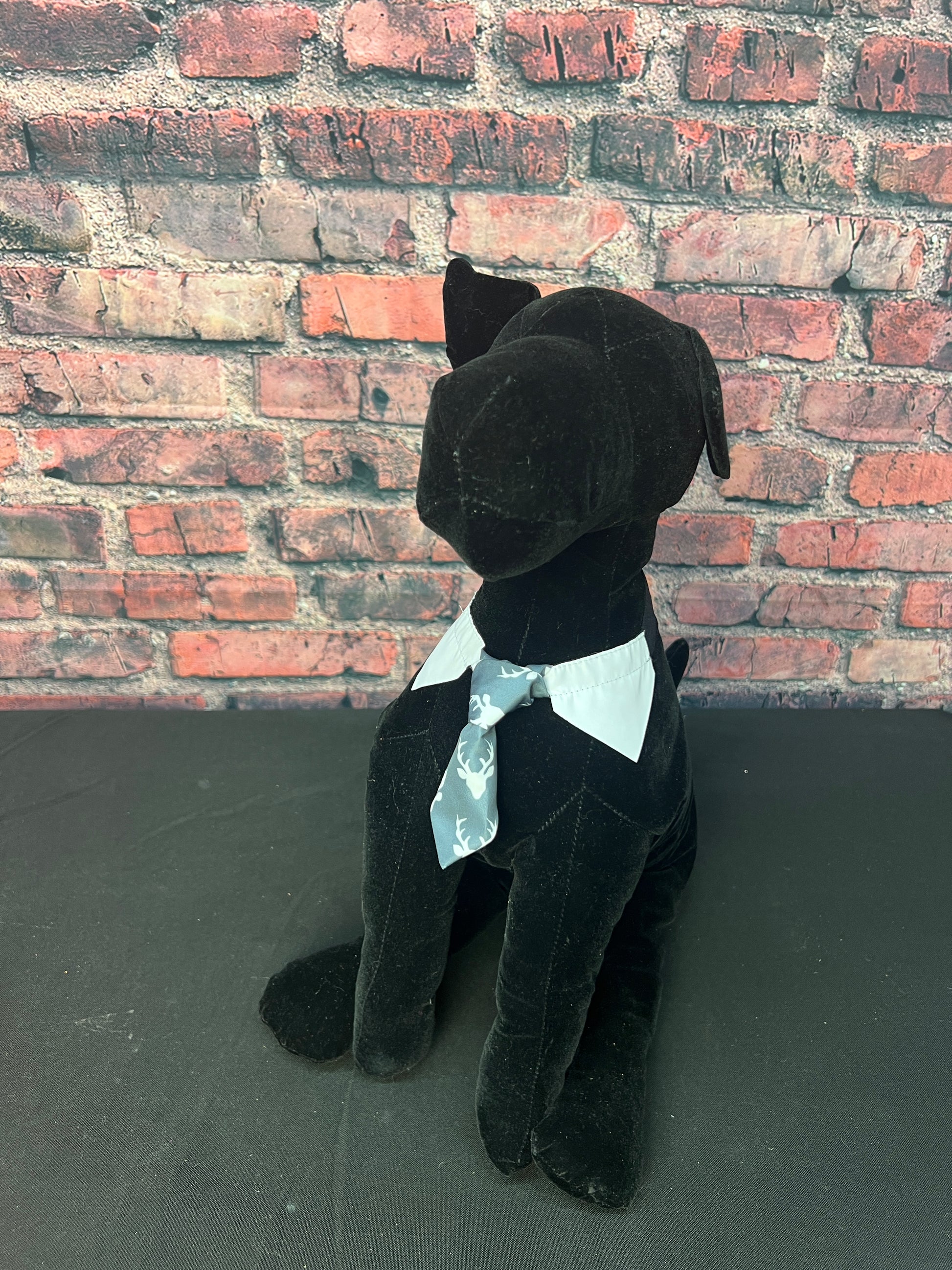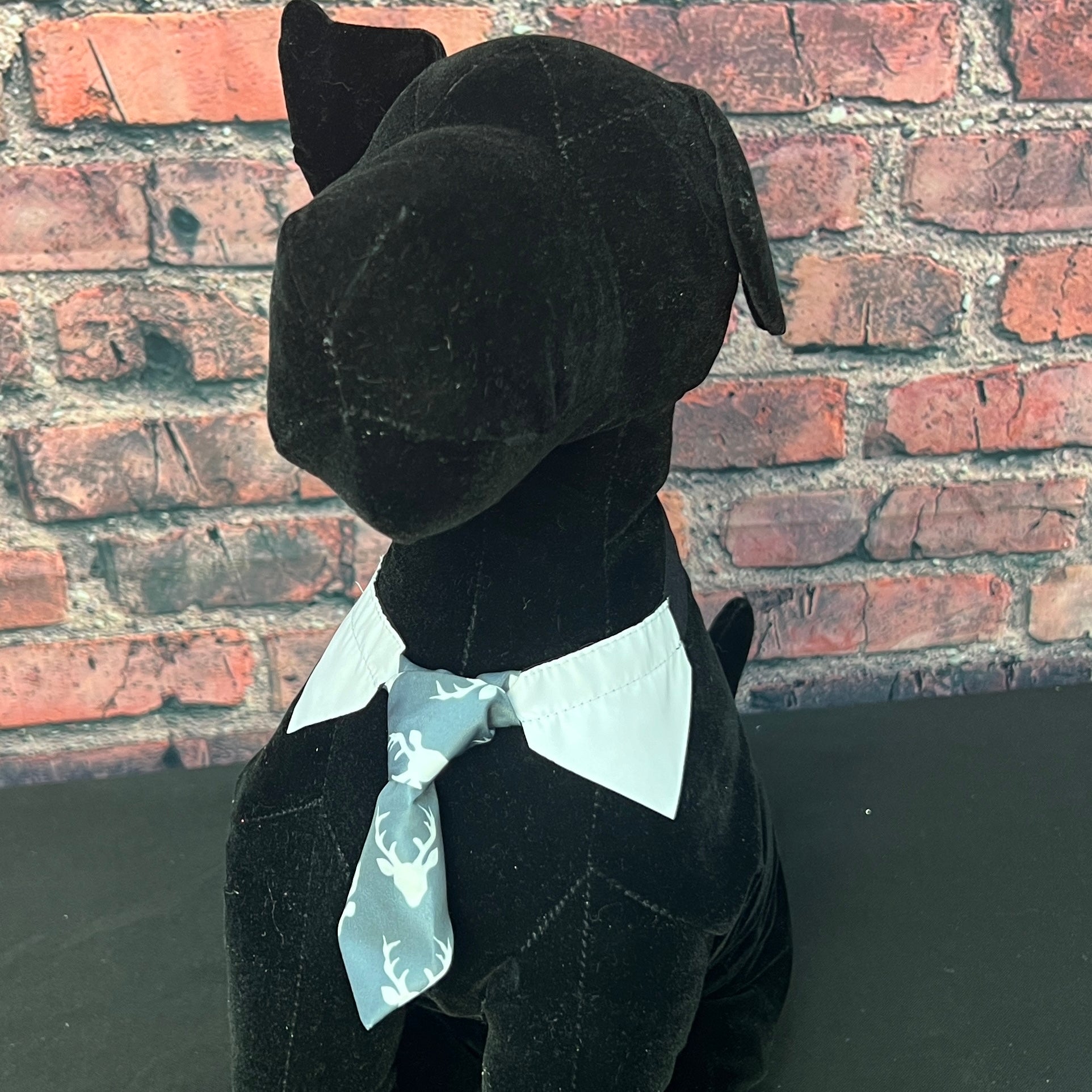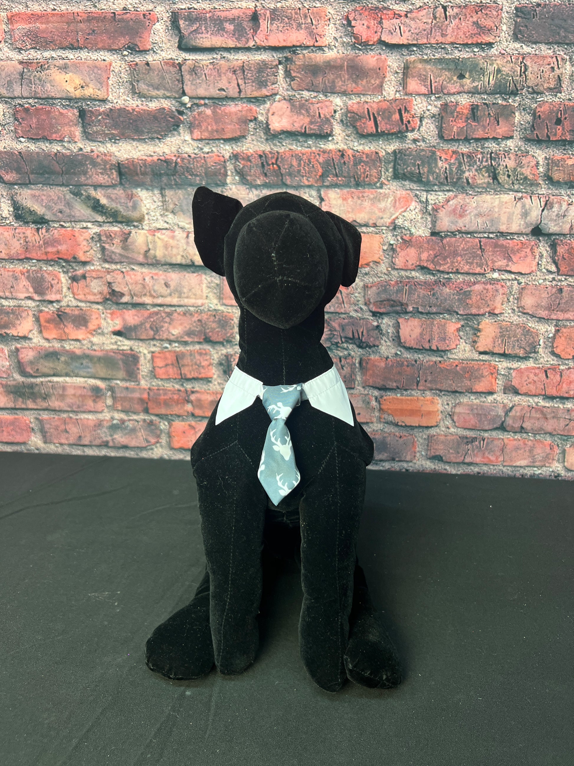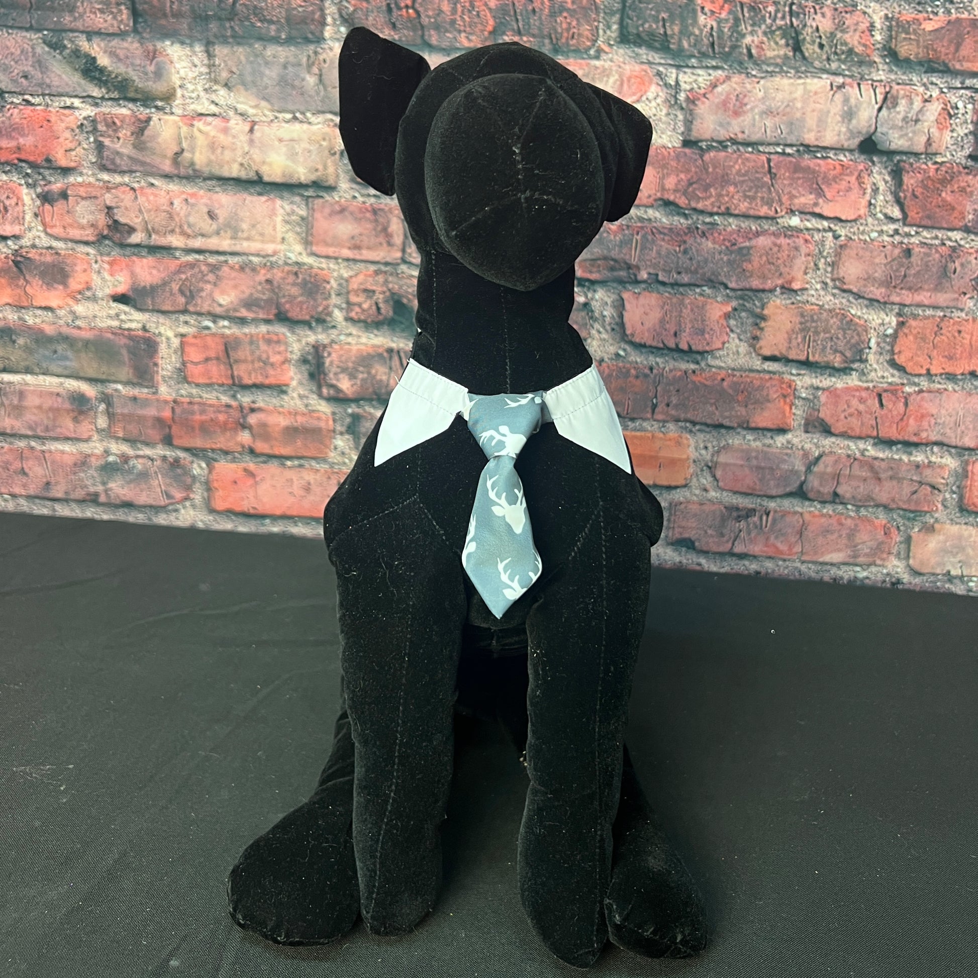 Add some charm to your grooming routine with our DEER ON GREY SHIRT COLLAR AND TIE. Made of high-quality DEER PRINT FABRIC, this accessory is both stylish and functional. With a perfect fit for neck sizes 9"-16", it's the must-have addition to your grooming salon.