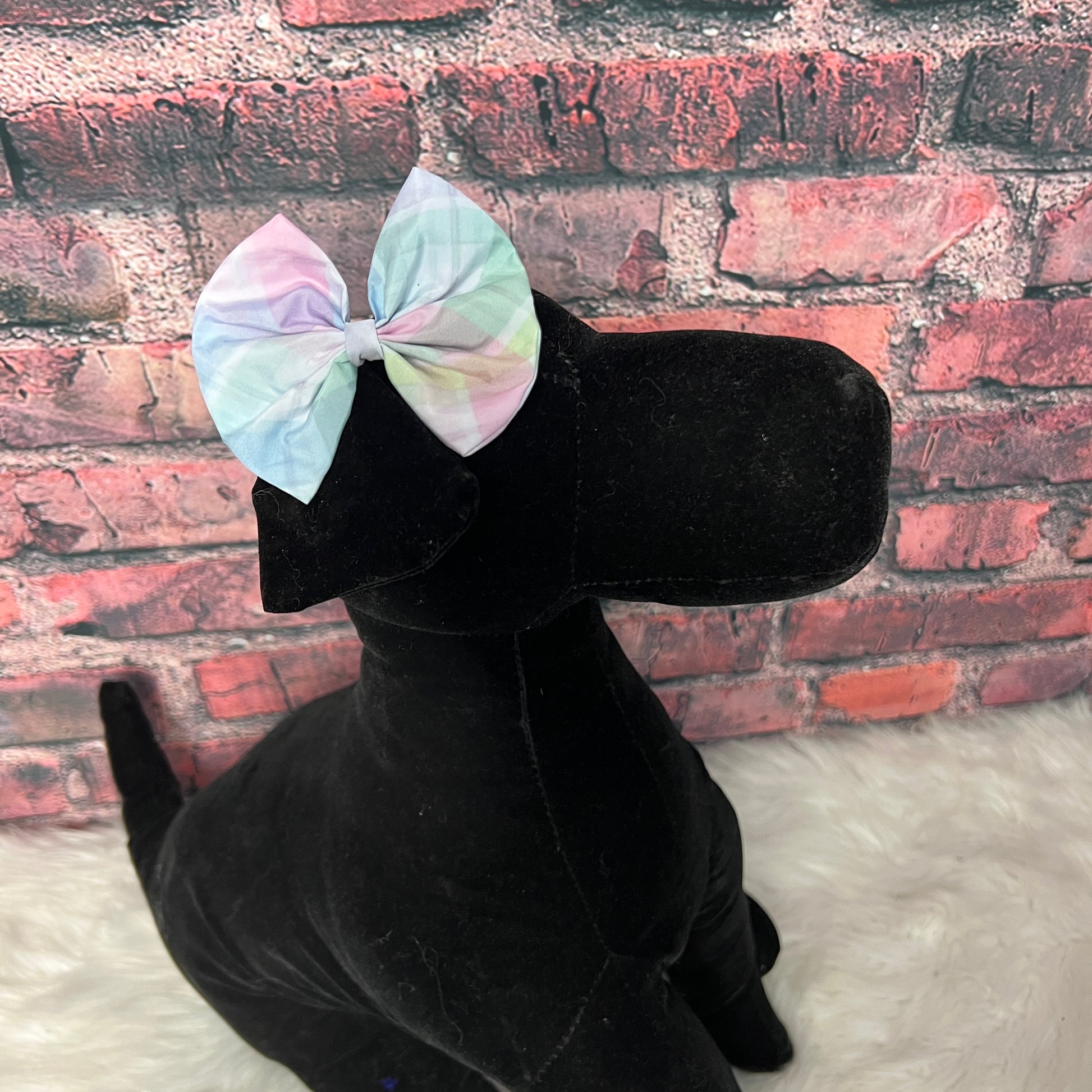 Add a pop of color and style to your furry client's Easter look with our Easter Plaid Bow! Perfect for your next grooming sessions at the salon, each bow is designed with a convenient rubber band for easy attachment. Elevate your pup’s look with these adorable and practical bows.