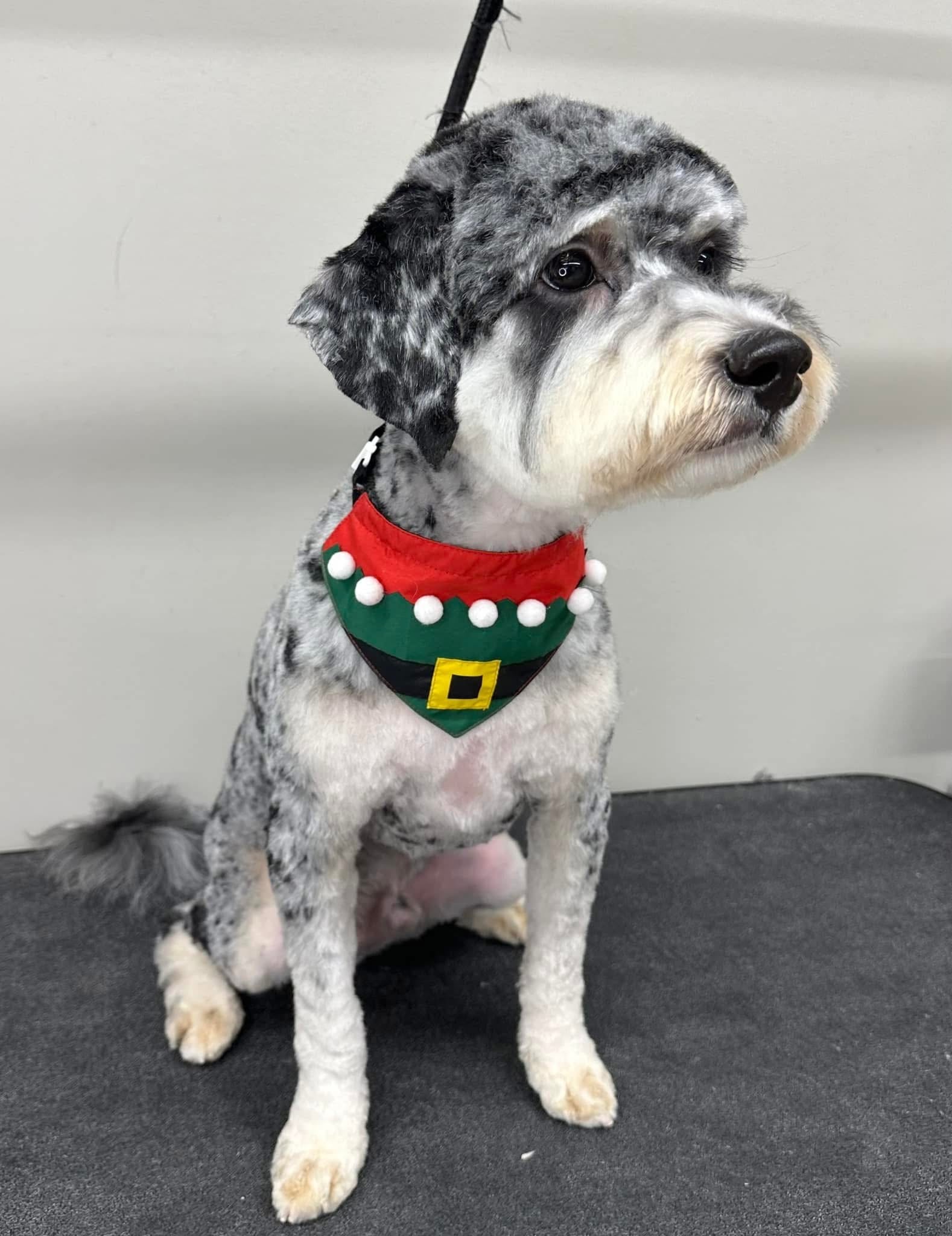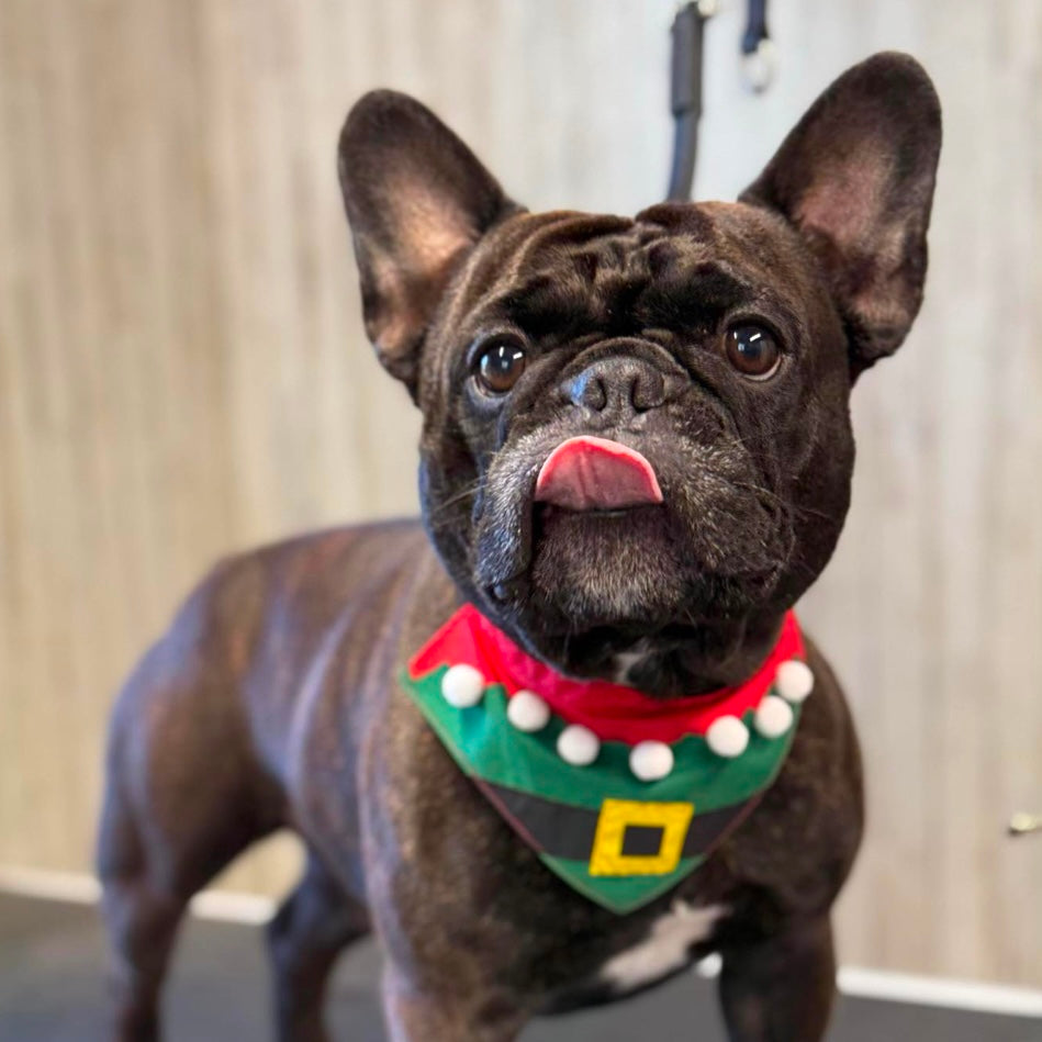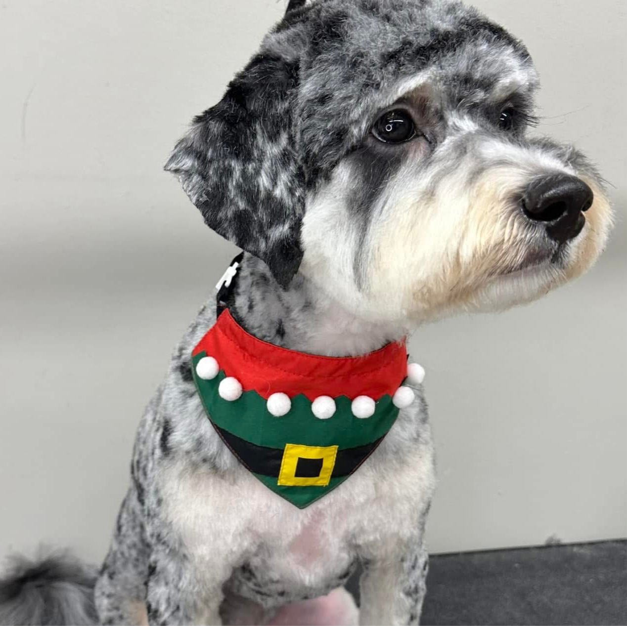 Keep your furry client looking cute and festive with our ELF BIB! These dog grooming accessories have an adjustable band with a clasp for a secure and customizable fit.