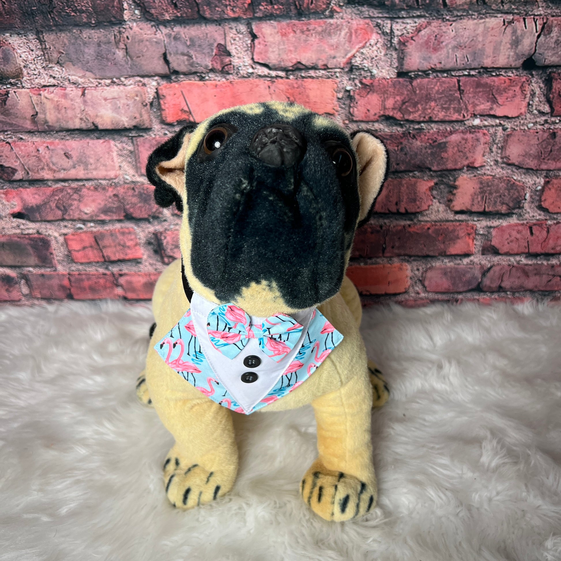Elevate your grooming salon experience with our FLAMINGOS BIB. Designed to fit neck sizes 10"-20", this accessory adds convenience and style to your routine. Keep your furry clients clean and comfortable while protecting their clothing. A must-have for any professional groomer.