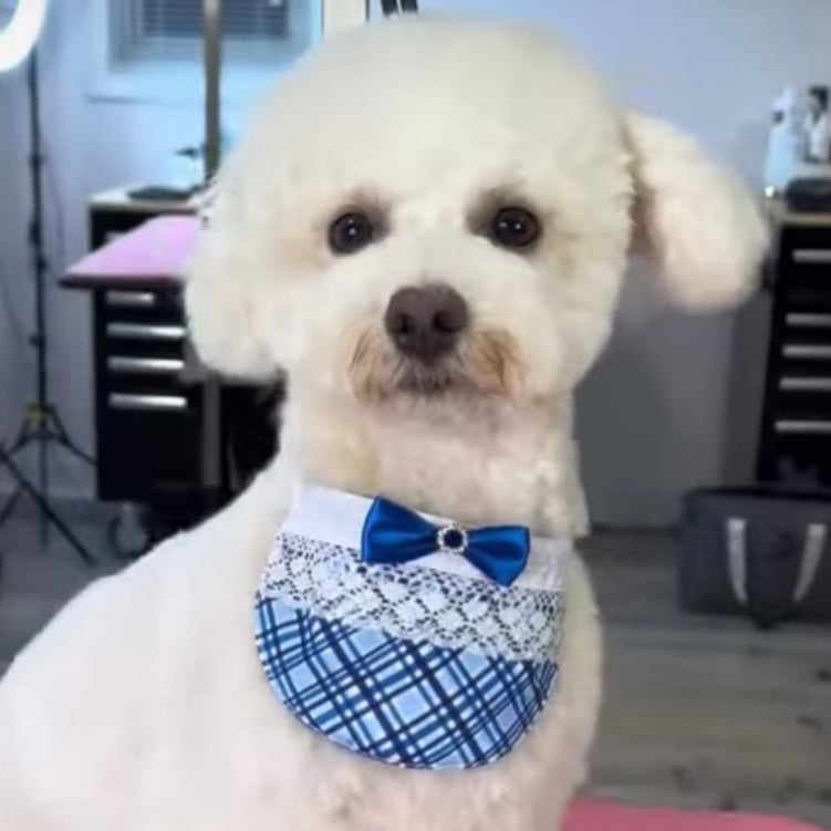 Dress up your furry client in style with our BLUE PLAID GIRL BIB! Perfect for post-grooming sessions, this dog bib features an adjustable strap with clasp for a comfortable fit. A must-have accessory for dog groomers, this bib adds a touch of charm to any pooch's wardrobe. FITS NECK SIZES 10”-13”.
