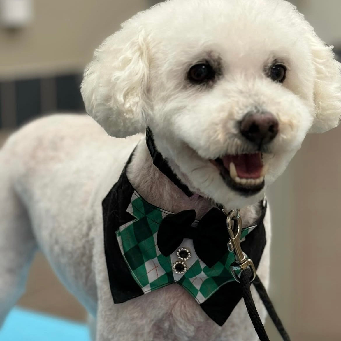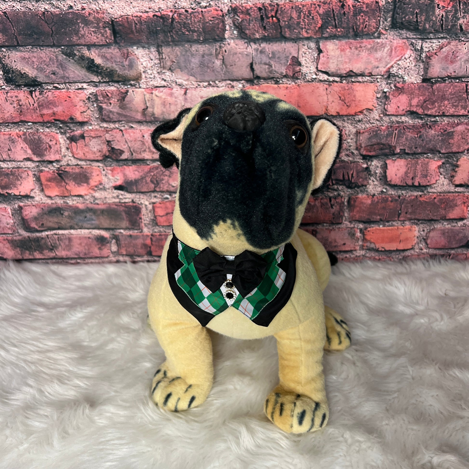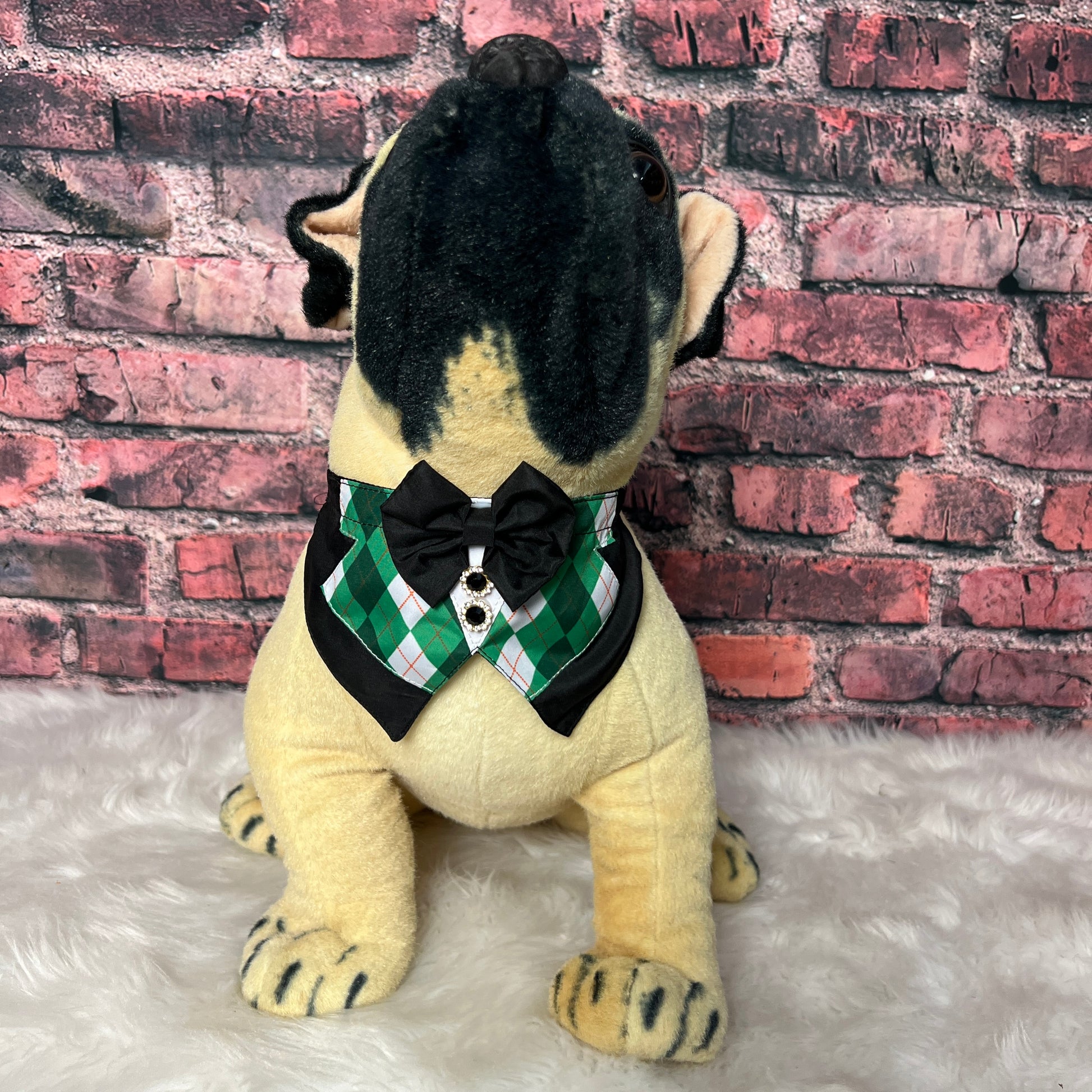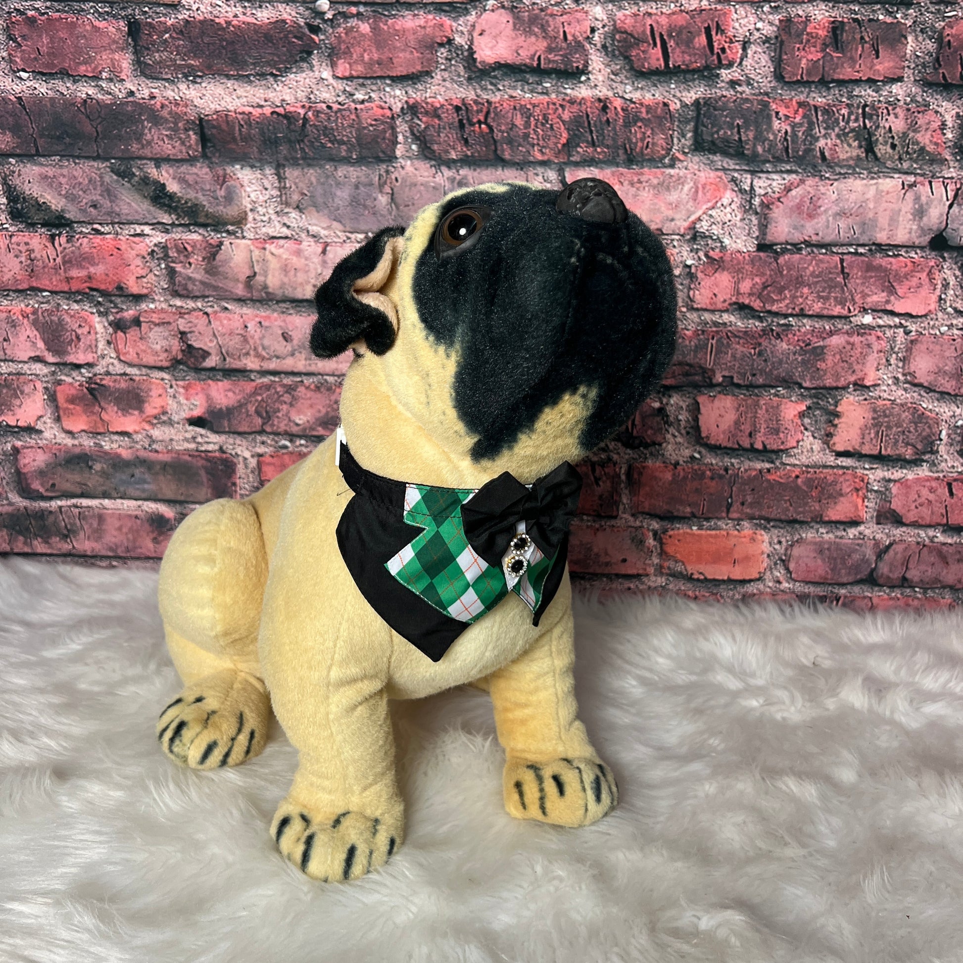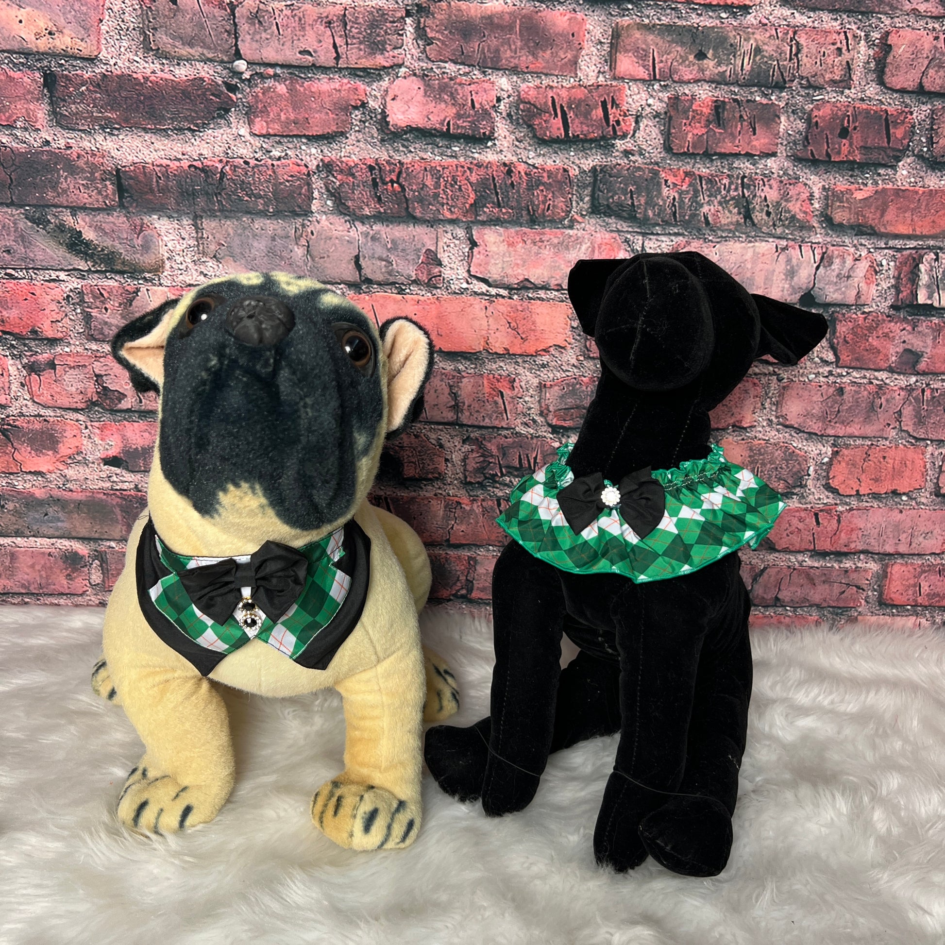 Enhance your grooming salon experience with our Green Argyle Big Boy Bib 4 Pack. Our stretchy elastic adjustable band fits neck sizes 13"-24," providing the perfect fit for any furry friend. Keep your pet clean and stylish with this must-have grooming accessory.