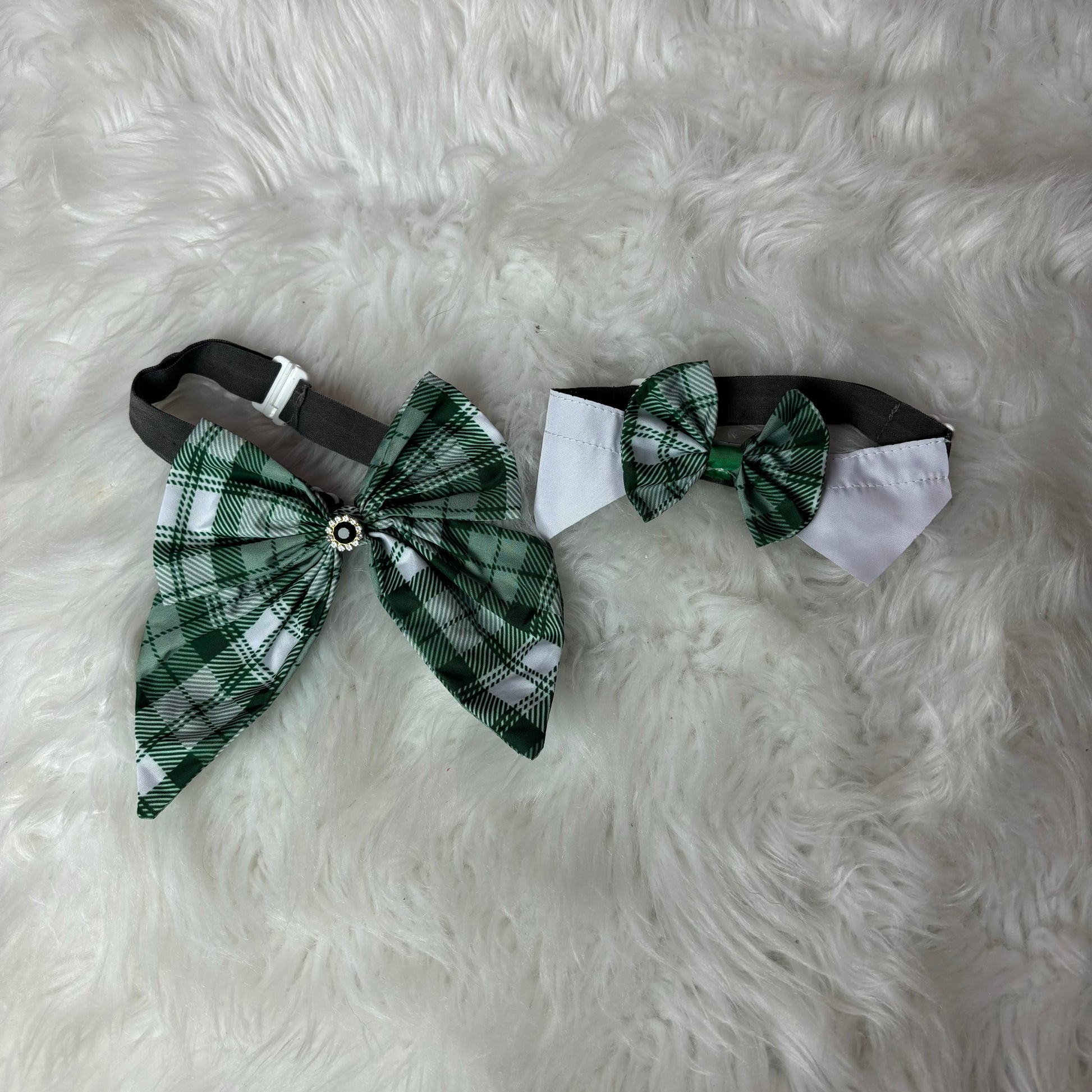 Elevate your dog grooming game with our 6-pack of Green Plaid Shirt Collar Bowties! These stylish accessories are the perfect addition to any groomer's arsenal, with an adjustable band and clasp for a secure fit. Stand out from the pack and add some flair to your furry clients.