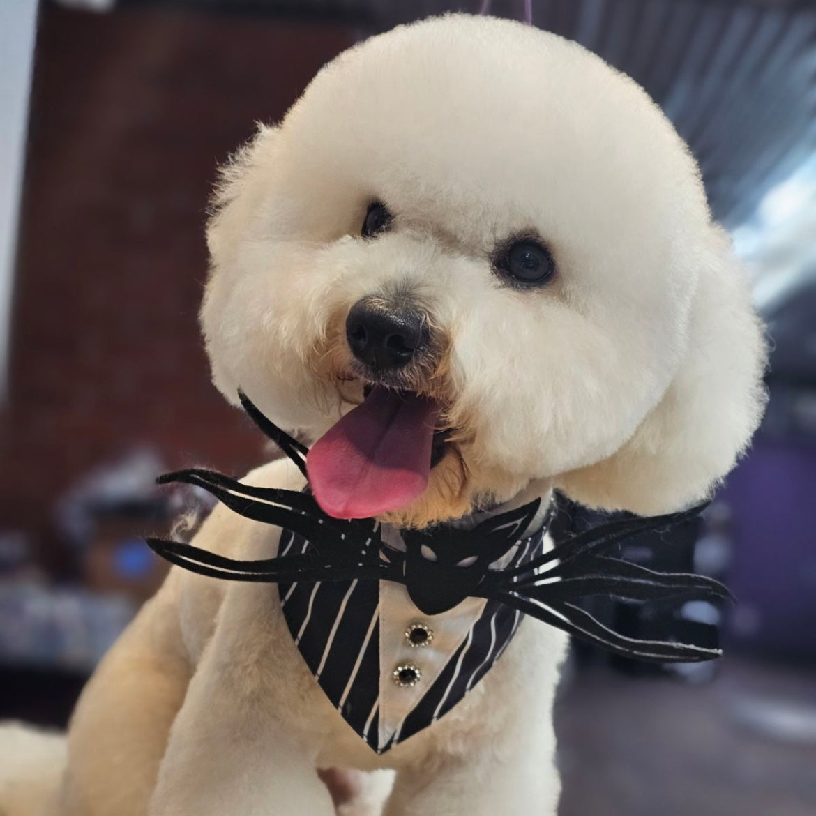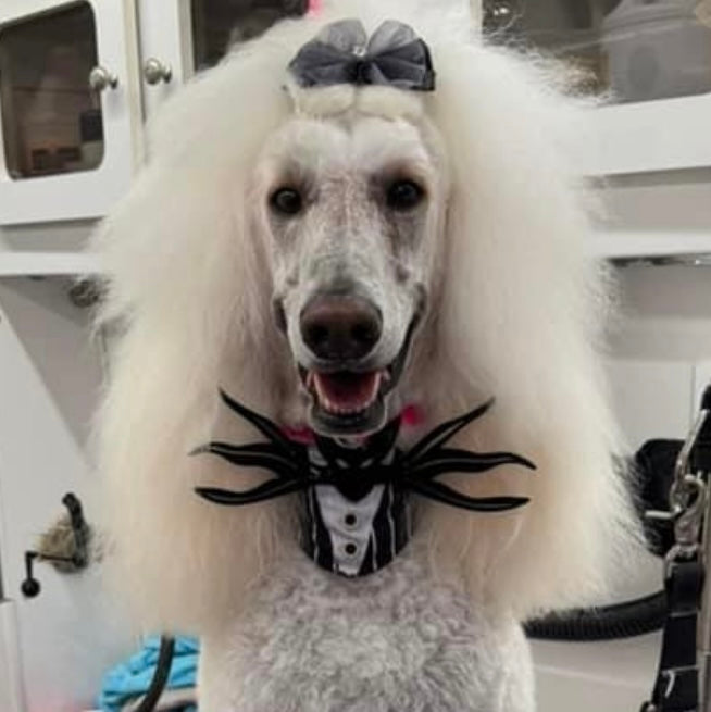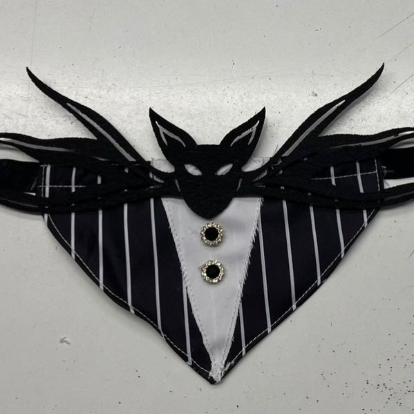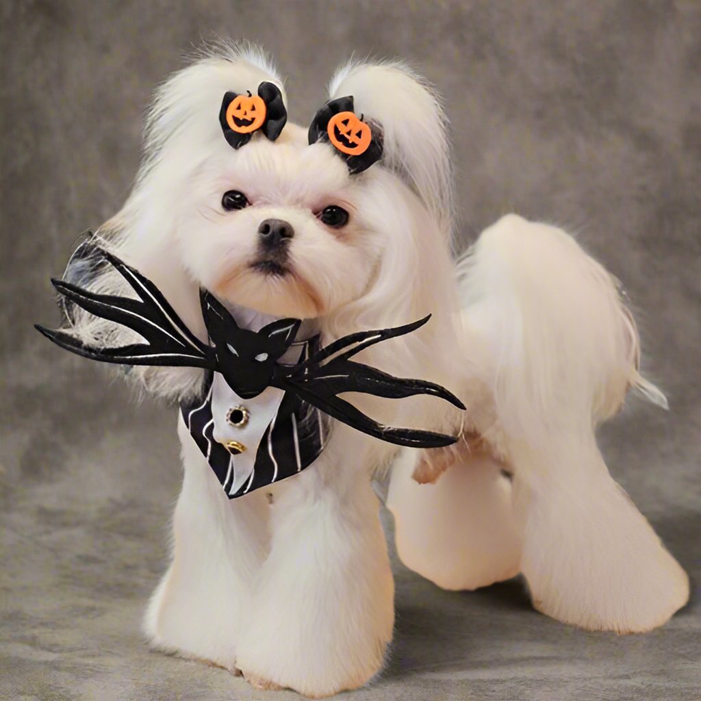 Get ready for some serious doggy cosplay with our JACK PUPINGTON BIB! This set features iconic Jack Skellington design and is great for grooming salons or adding a touch of fun to everyday walks. With an elastic adjustable neckband, it fits most small to large dogs.
