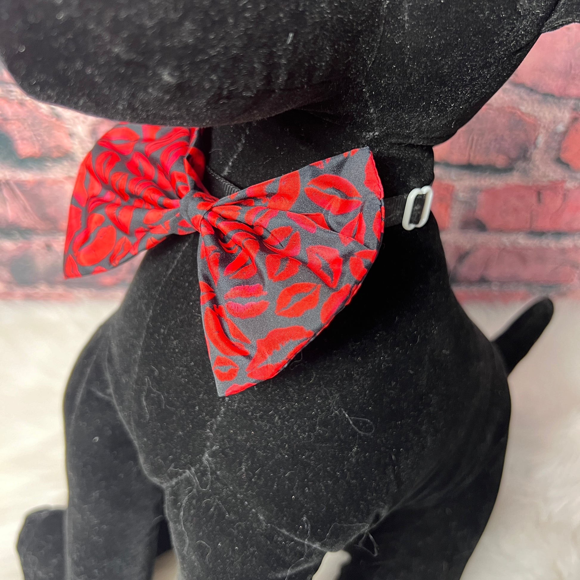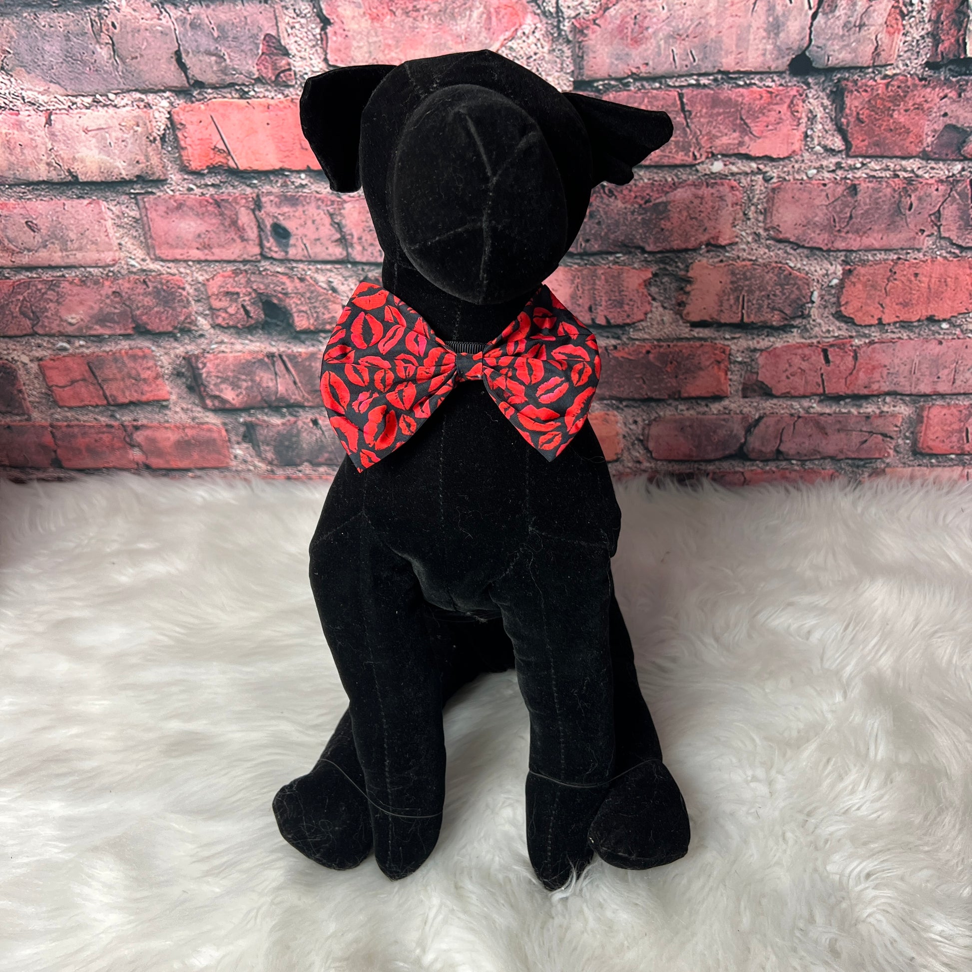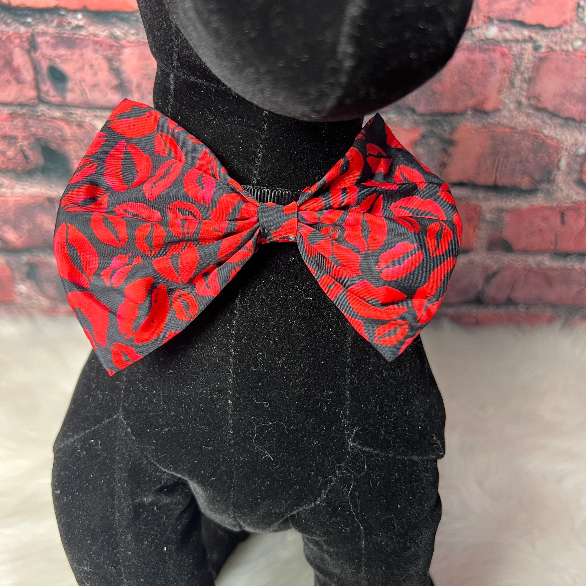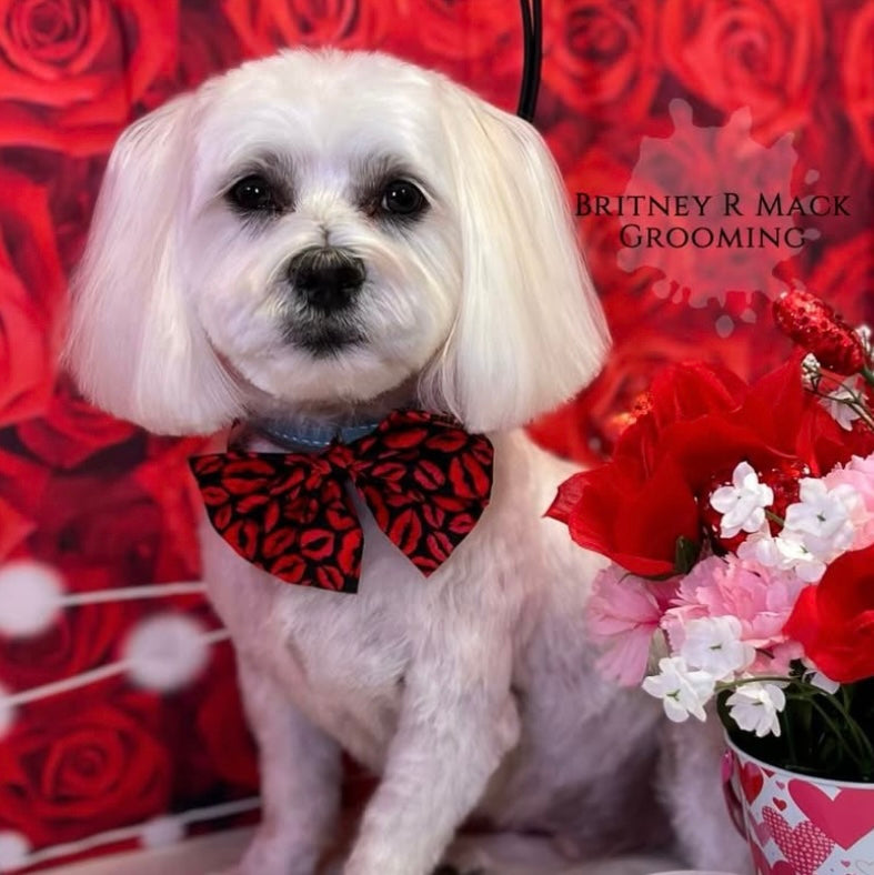 Elevate your dog's grooming game with our KISS THIS COLLAR BOWTIE. Each bowtie is expertly crafted and pairs perfectly with most dog collars (band not included). Ideal for dog grooming salons, these stylish accessories are a must-have for any doggy. Transform your clients look with ease. BOW IS 5” IN WIDTH.