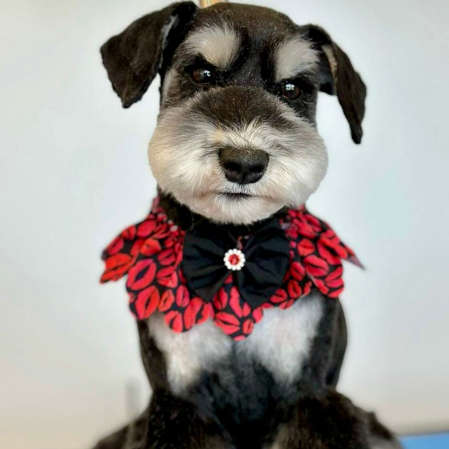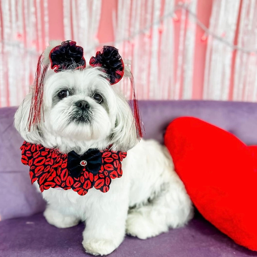 Enhance your dog grooming salon with the KISS THIS TIE-ON RUFFLE 5 pack. These size M-L ruffles are the perfect dog accessory, fitting neck sizes 9"-19". Add a touch of flair to your furry clients while keeping them looking sharp.