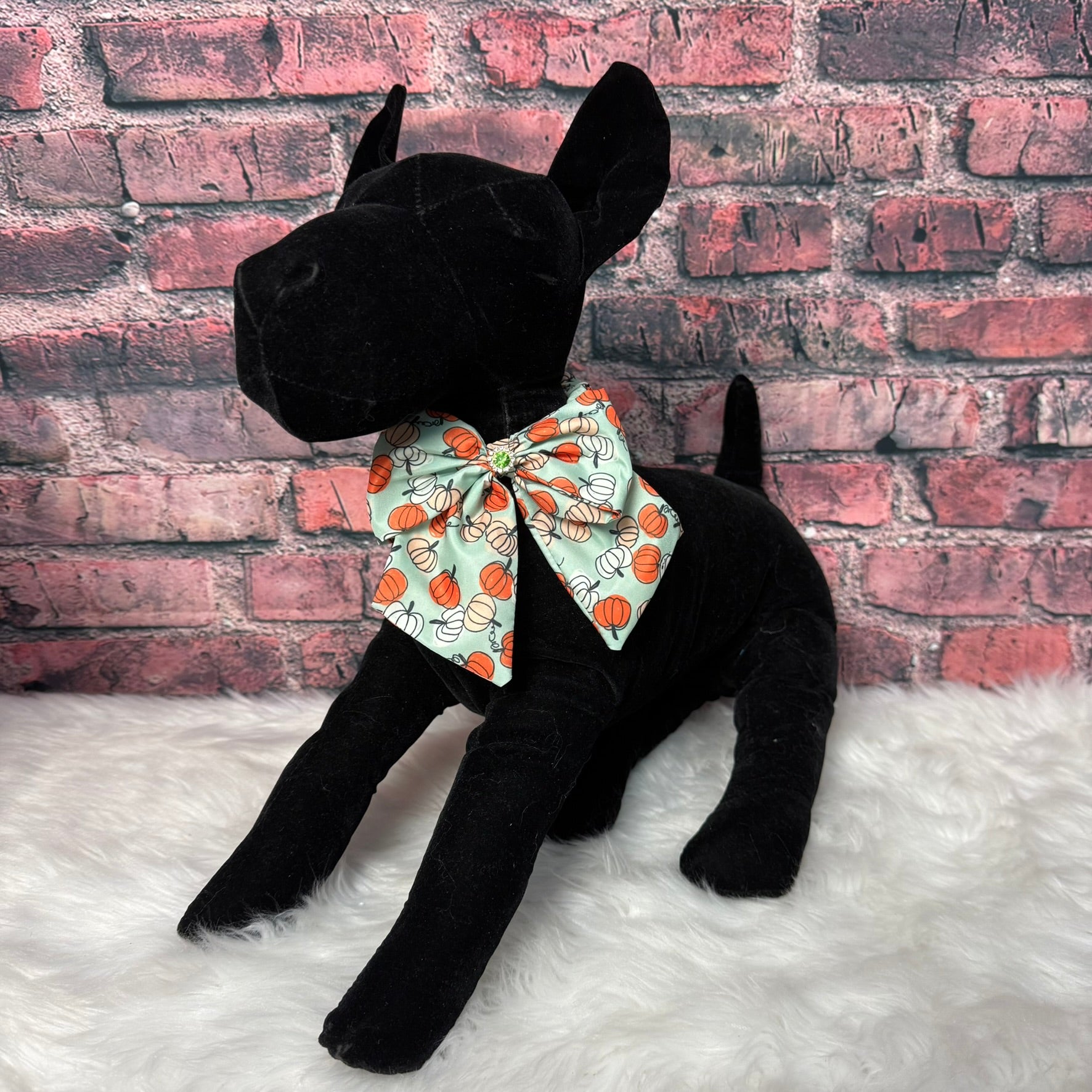 Add a festive touch to your pup’s look with this Mint Pumpkin Bowtie 4-pack! Designed with a stretchy elastic band, these bowties easily fit tiny to small pups, ensuring comfort and style. The playful pumpkin design with tails is perfect for fall fun and seasonal photos. Mix and match to keep your furry friend looking charming all season long! FITS 6"TO12"NECKSIZE