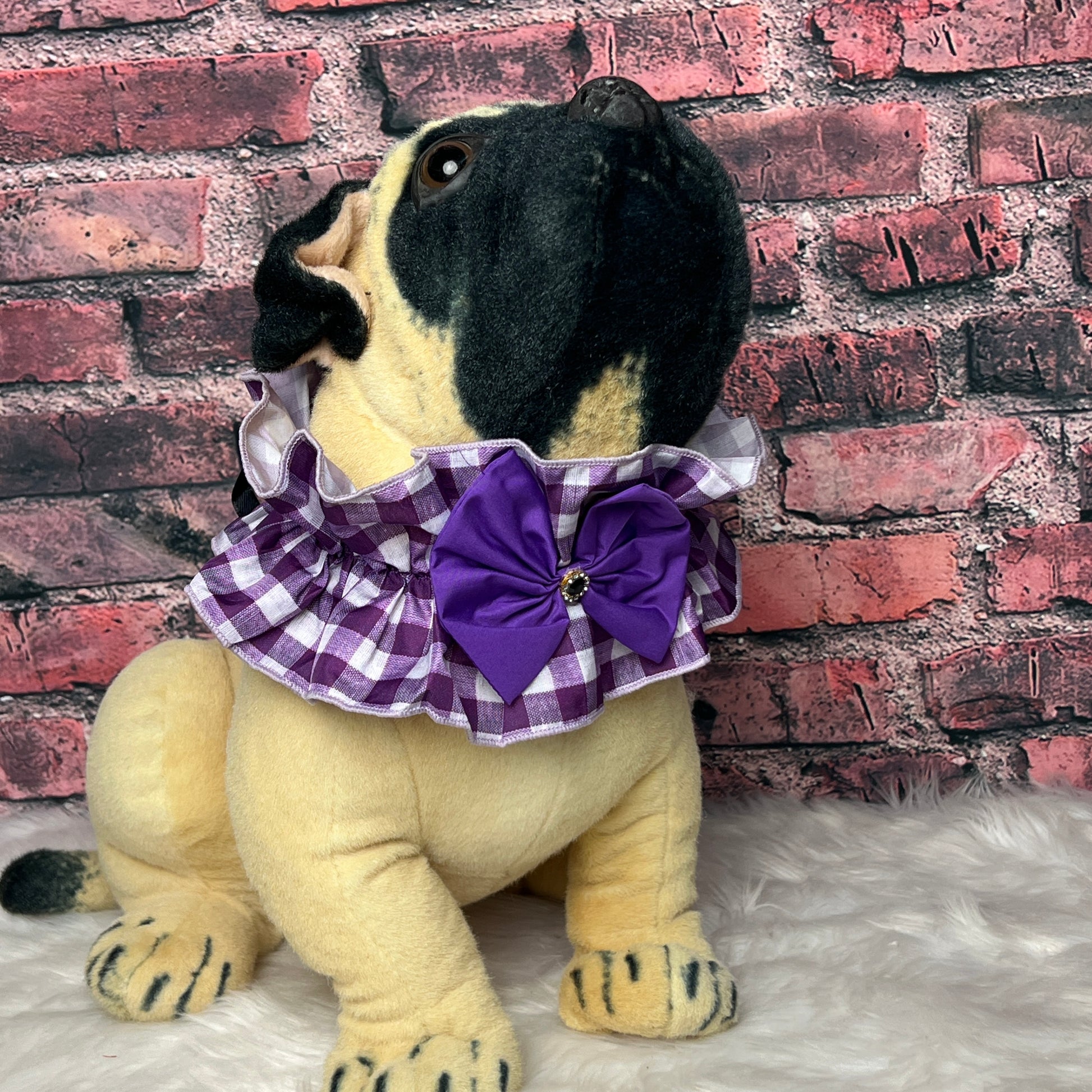 Keep your pup's style on point with this vibrant purple check choker pack! Each elastic band ties securely around your dog's neck (fits 14-26 inches) for a fun, fashion-forward look. Perfect for medium to large dogs who deserve a pop of personality. Comfortable, adjustable, and ready to turn heads at the dog park!