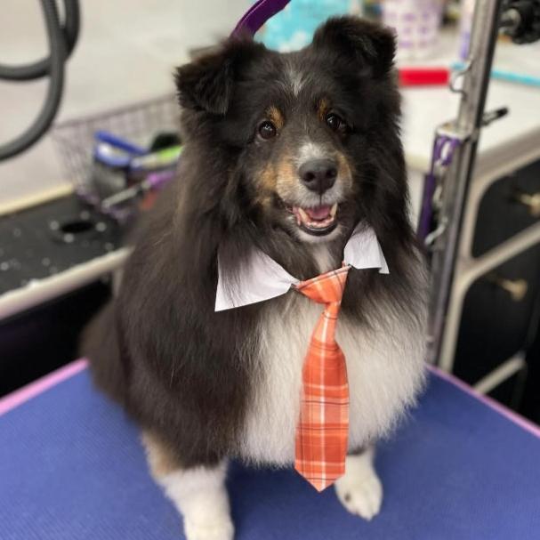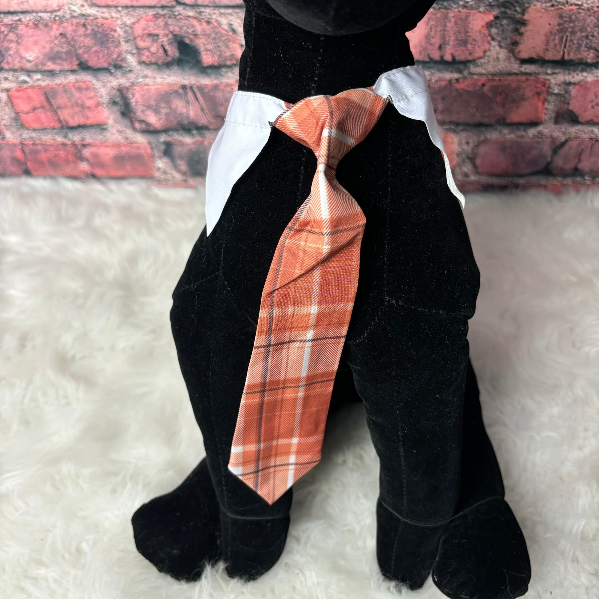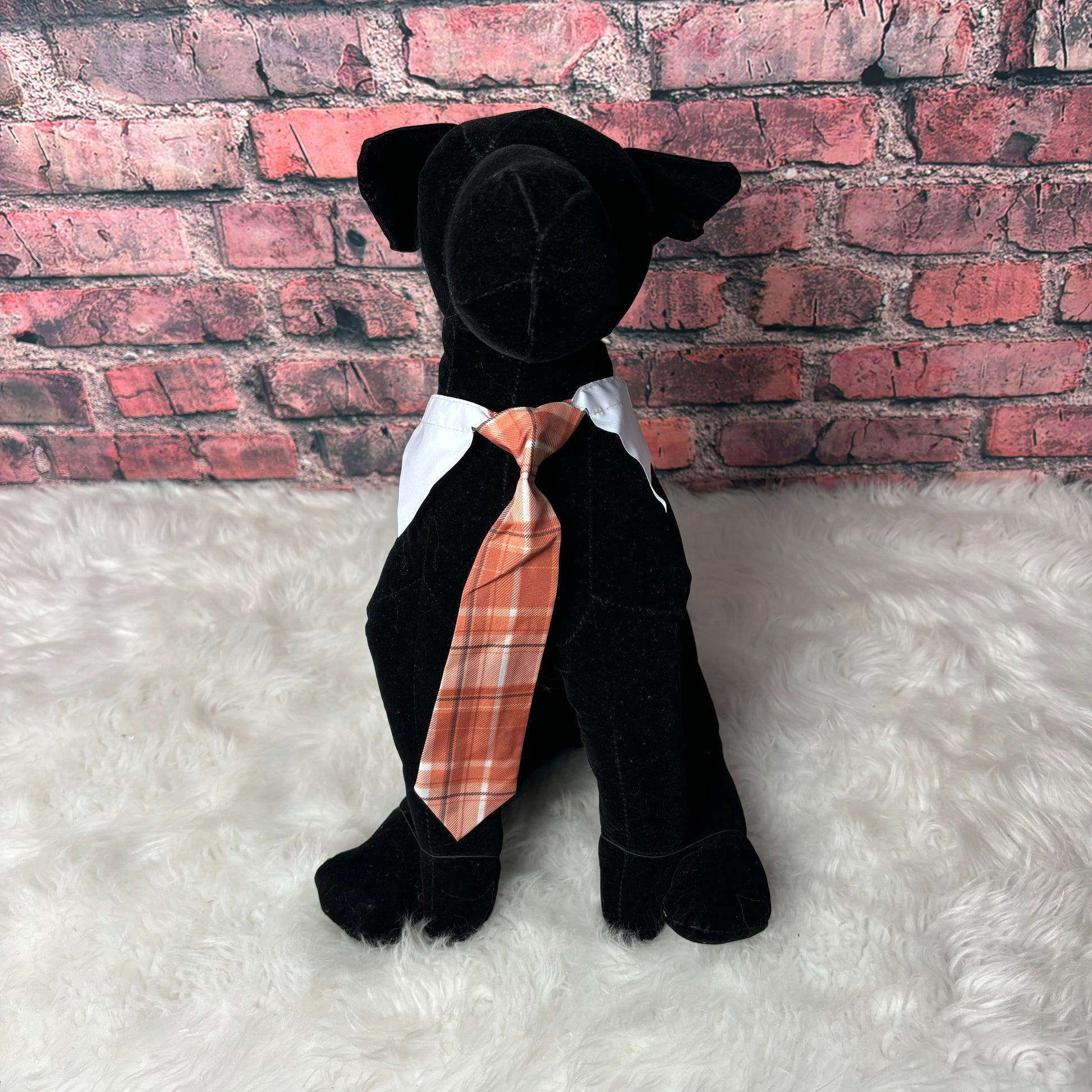 Finish your furry clients grooming session in style with our ORANGE PLAID SHIRT COLLAR & TIE! Perfect for dog groomers, this salon accessory is both functional and fashionable. Its adjustable band and clasp ensure a comfortable fit. Elevate your grooming game with this must-have set! FITS NECK SIZES 14”-18”.