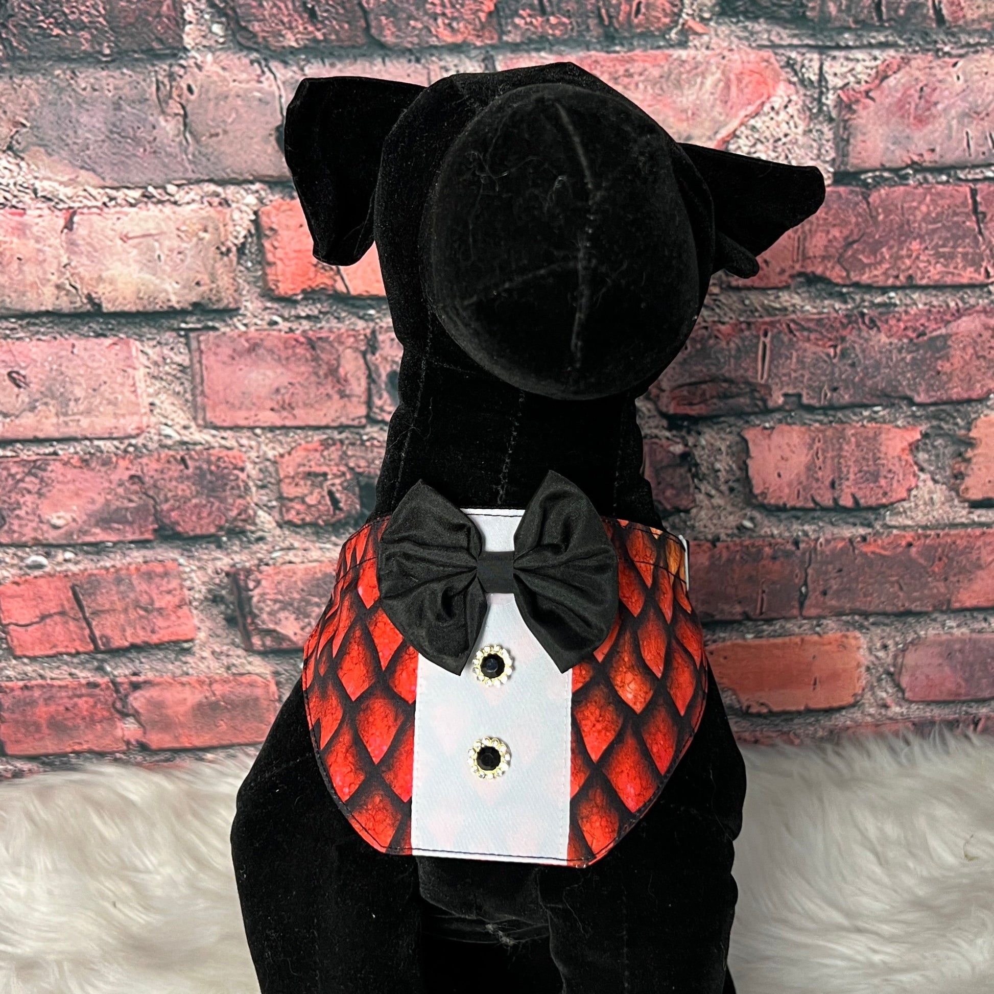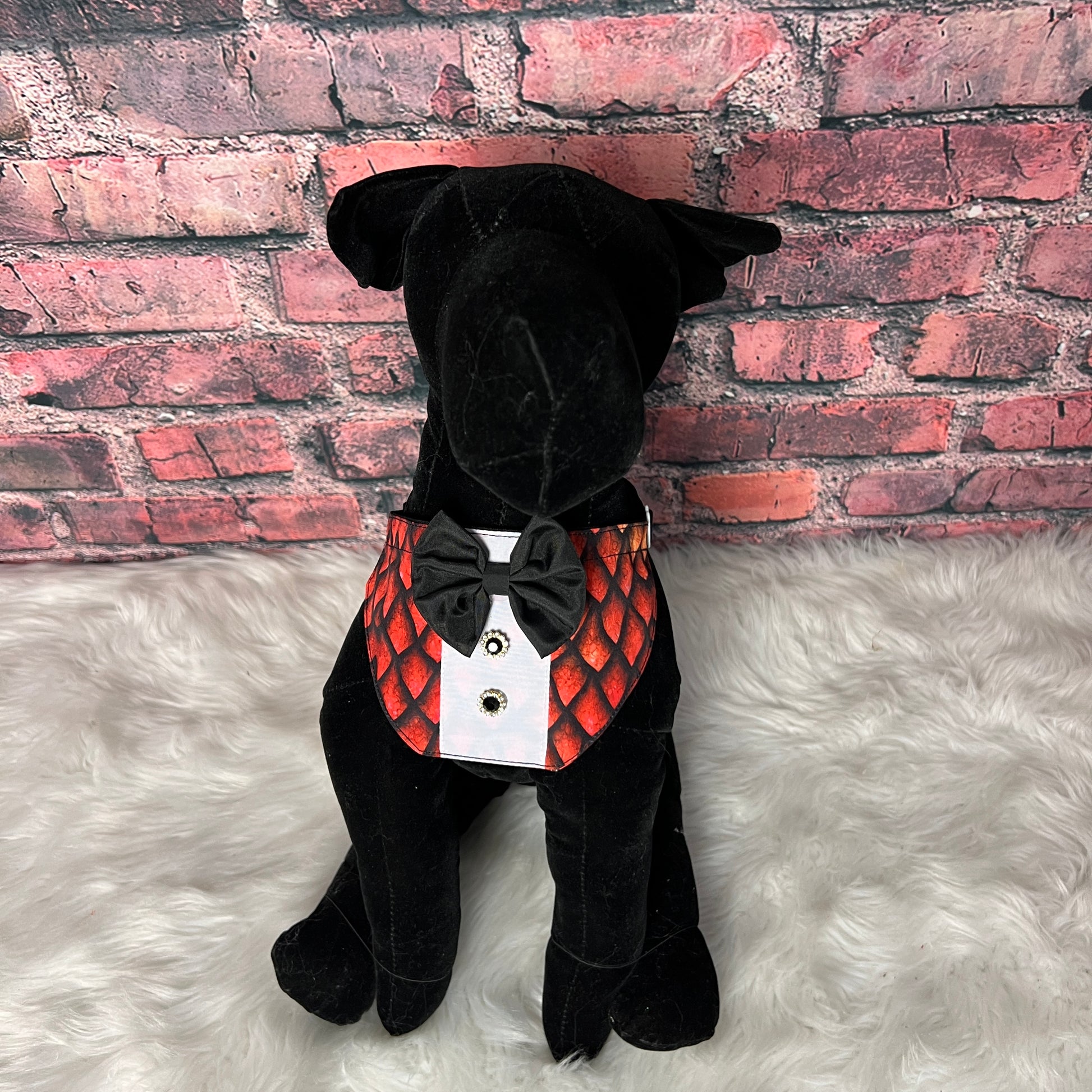 Add some fun and quirky style to your pet grooming routine with this 4-pack of Orange Scales Bibs! The stretchy elastic band is adjustable to fit neck sizes 11-22 inches. Perfect for any grooming salon or at-home grooming session.