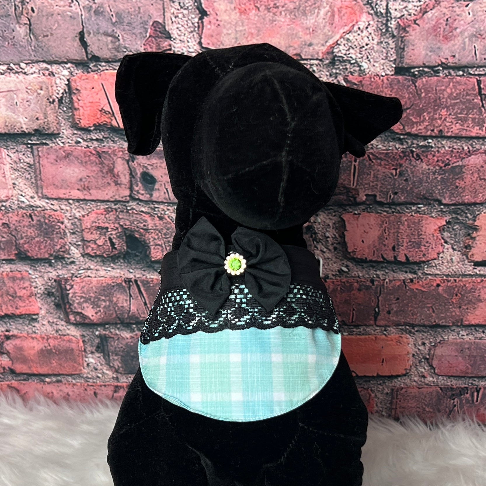 Upgrade your grooming salon with our Pastel Plaid Girl Bib! Featuring delicate lace and an adjustable band with a secure closure, these bibs add a touch of style, perfect for dog grooming salons! FITS NECK SIZES 11”-13”.