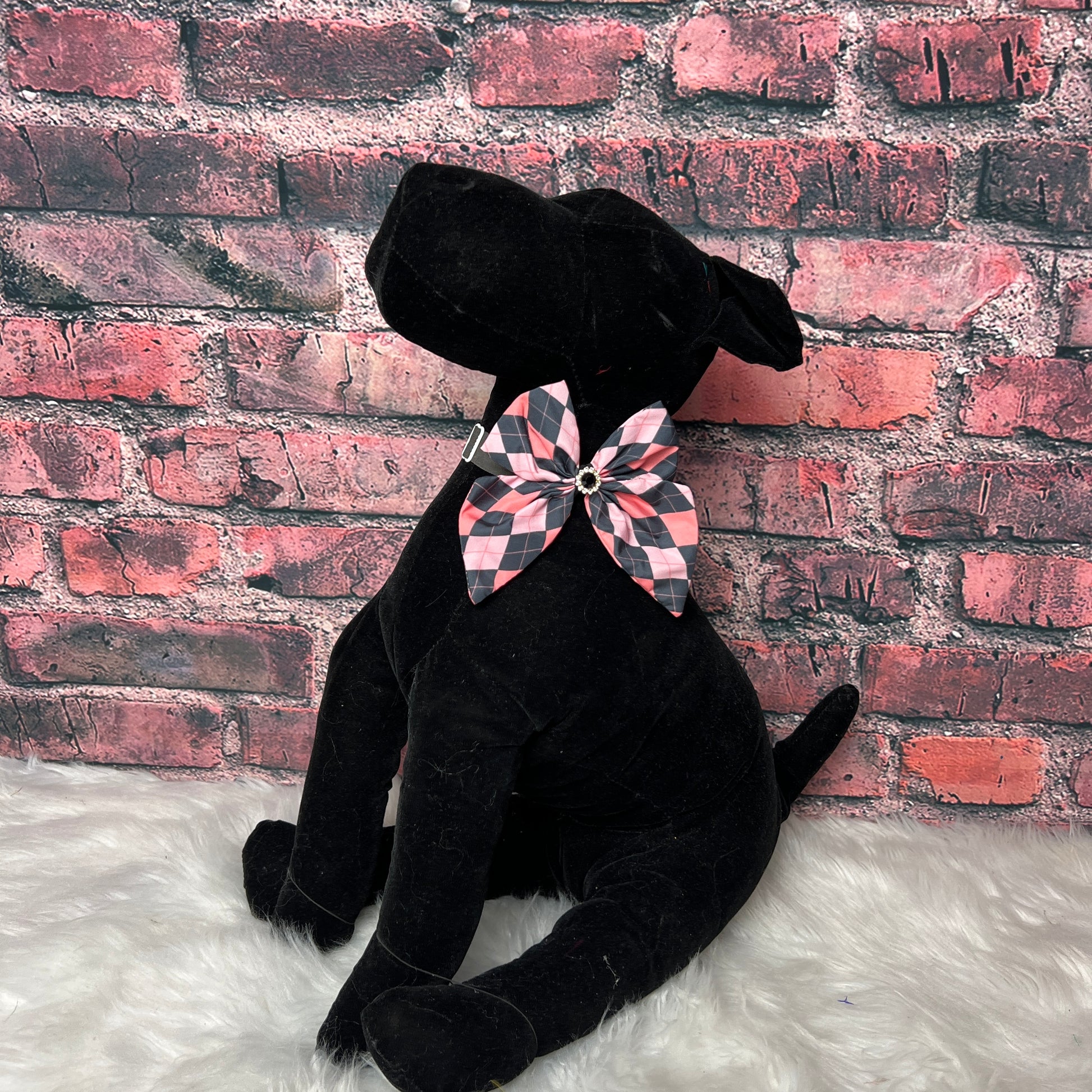 Pink and grey ARGYLE bow tie with tails(4 INCH) 6 pack