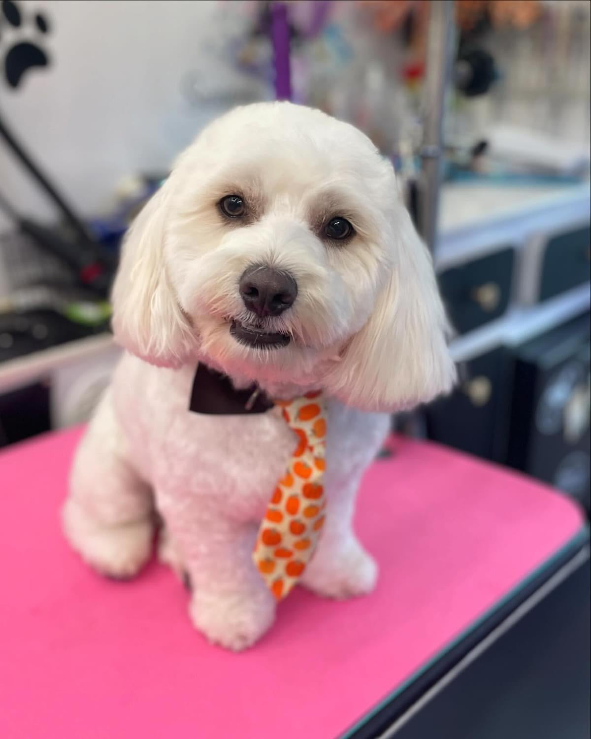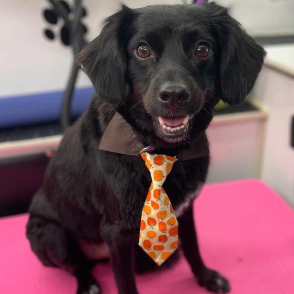 Add a touch of personality to your dog grooming sessions with our cute pumpkin print shirt collar and neck tie. Perfect for dog groomers and grooming salons, the adjustable strap with clasp allows for a comfortable fit. Transform your client into a dapper pup with this adorable accessory! FITS NECK SIZES 13”-17”.