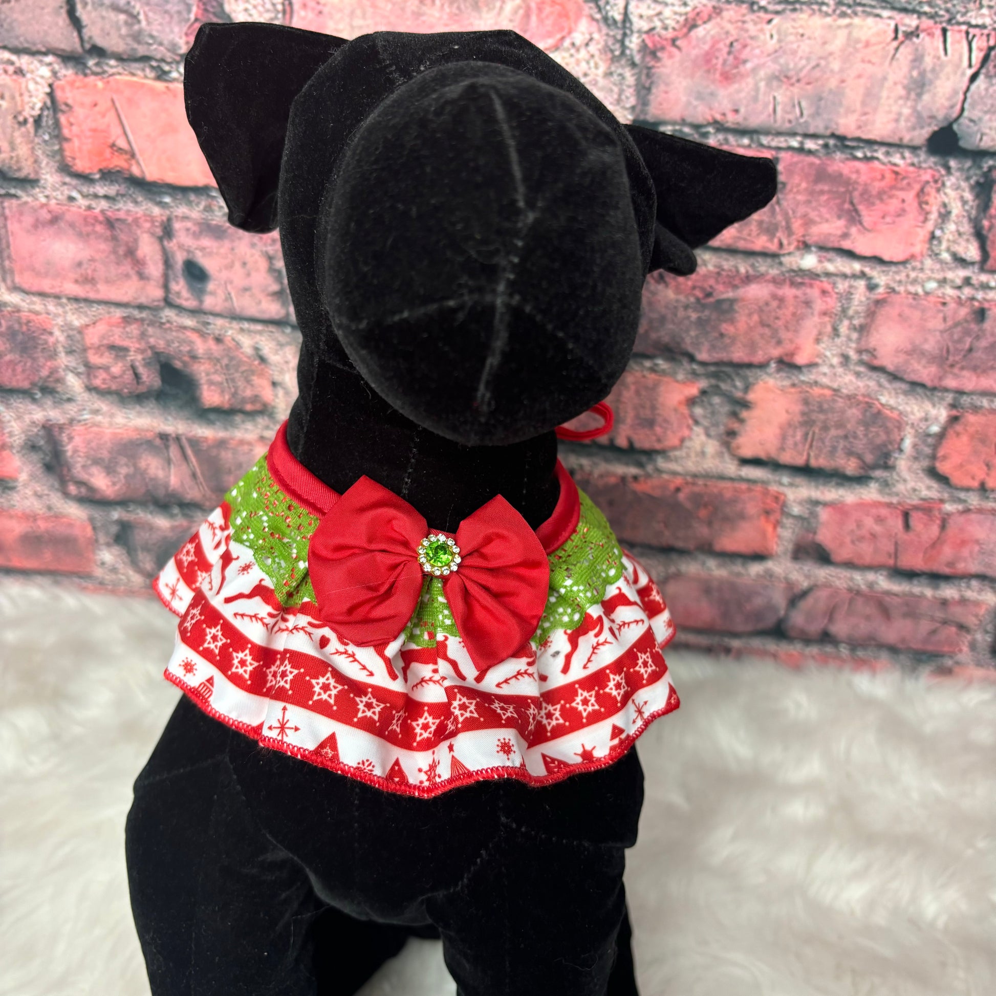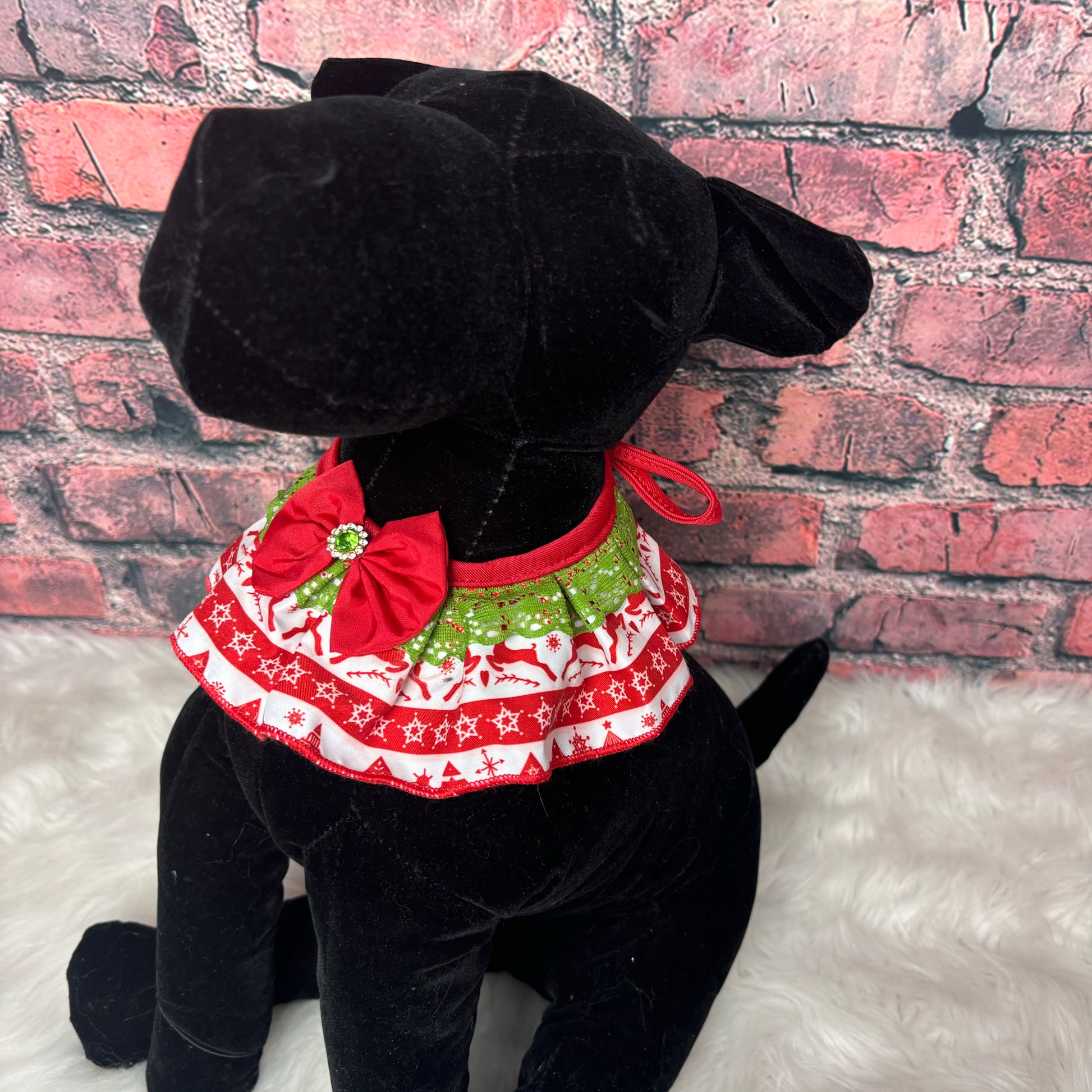 Get your furry client in the holiday spirit with our REINDEER PRINT TIE ON RUFFLE! This festive dog grooming accessory features a charming reindeer print and a ruffle with a tie in the back for a secure fit. Perfect for adding a touch of holiday cheer to your furry friends look! FITS NECK SIZES 11”-15.5”.