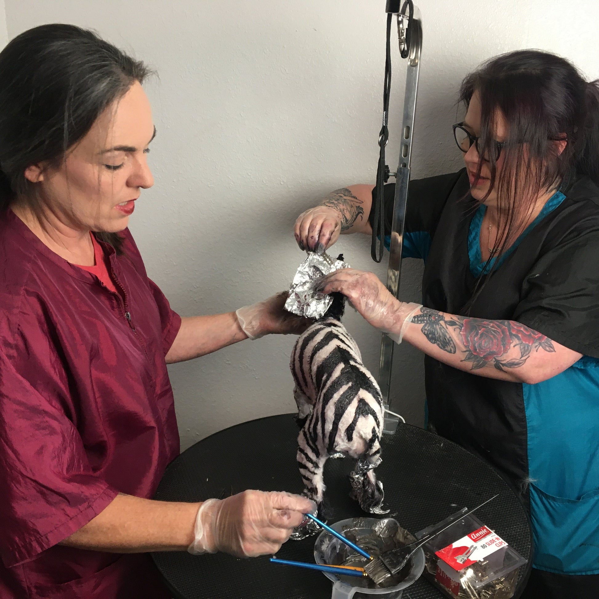 Please bring a brush, comb, scissors, cordless clipper (if you have one) for the hands-on day. Wear clothing that is suitable for coloring dogs.