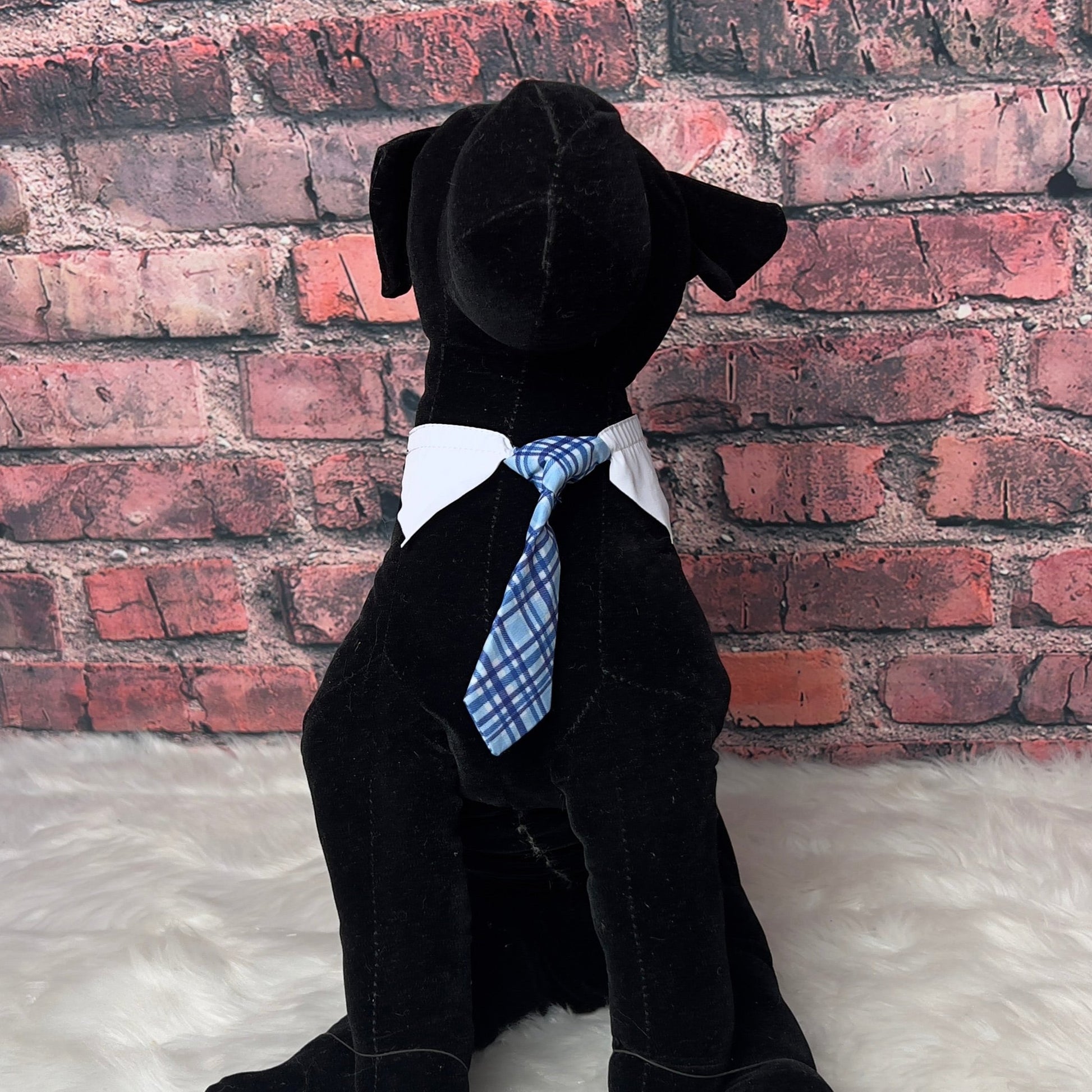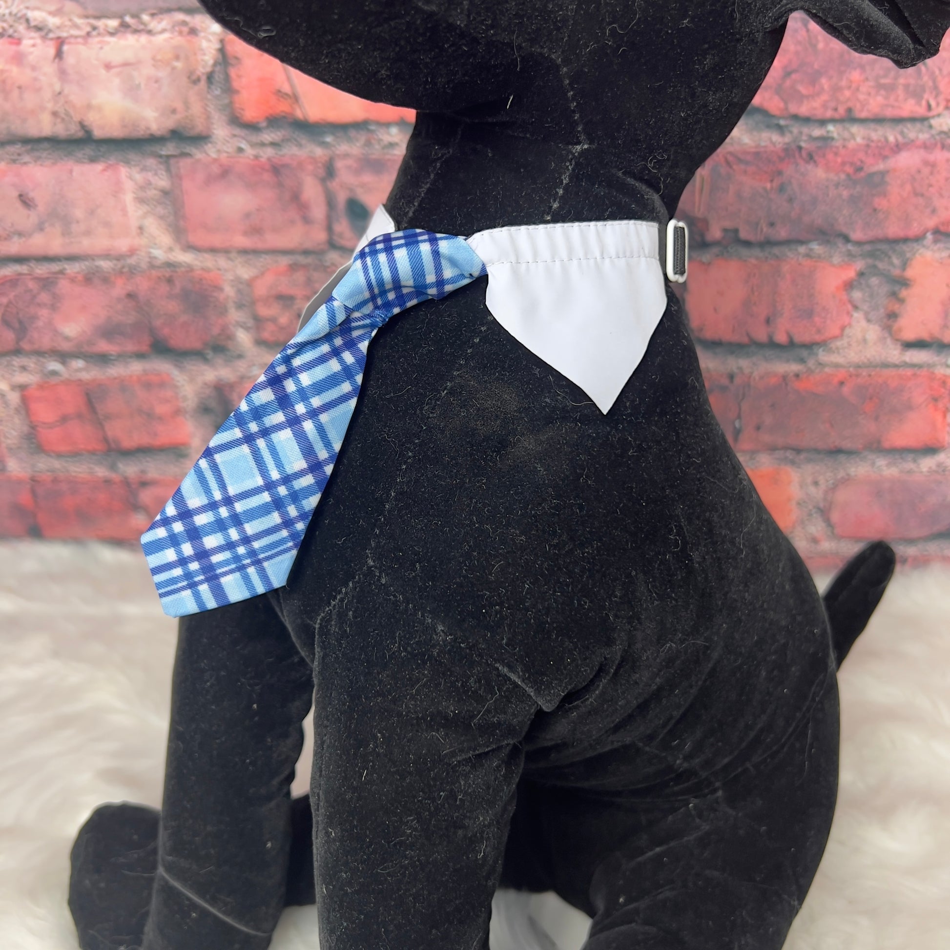 Transform your client into a dapper dog with our Blue Plaid Shirt Collar Tie! Perfect for post-grooming sessions or a trip to the doggy salon. The adjustable band with clasp ensures a comfortable fit, making it a must-have accessory for any dog's wardrobe. FITS NECK SIZES 10”-13”.