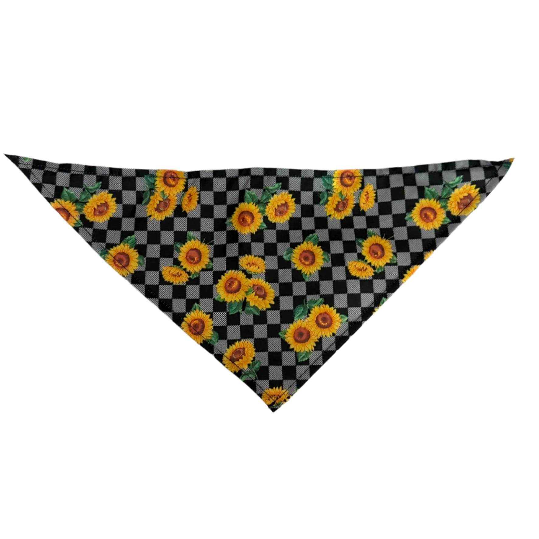 Let your pup rock the floral trend with our Sunflower Bandana M/L - 8 Pack. The black checked background is adorned with radiant golden sunflowers, and the fur-resistant fabric makes it ideal for any dog groomer. A must-have accessory for any fashion-forward pooch!