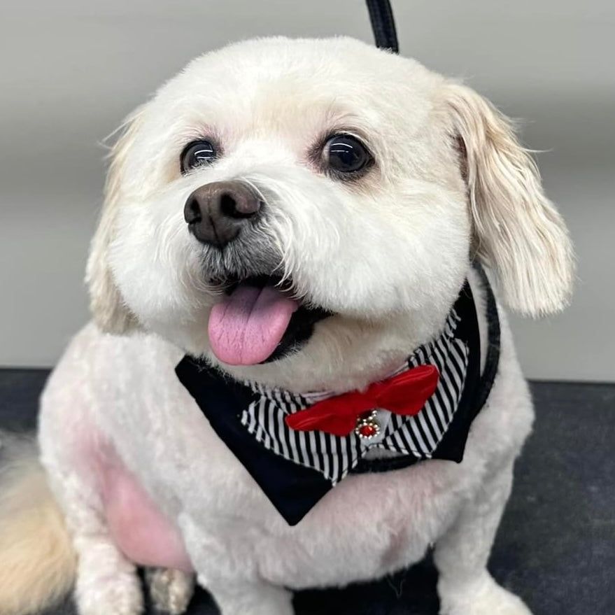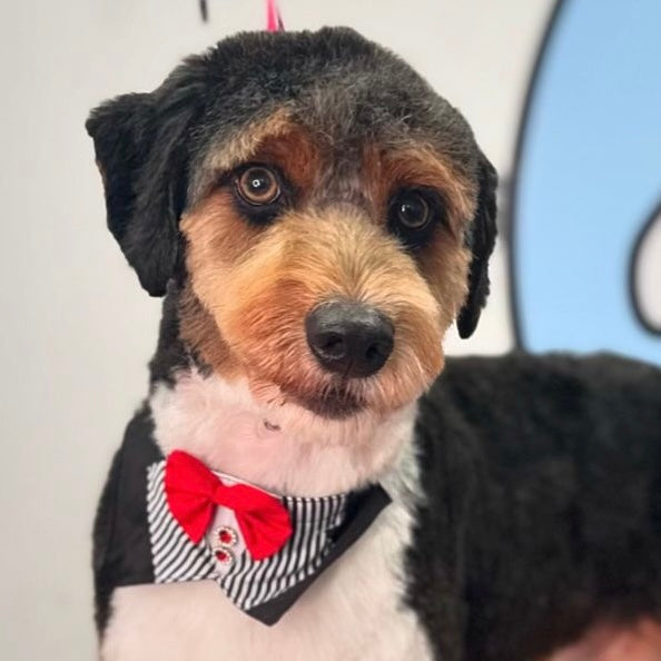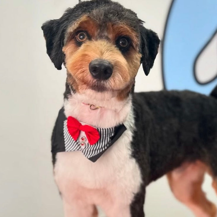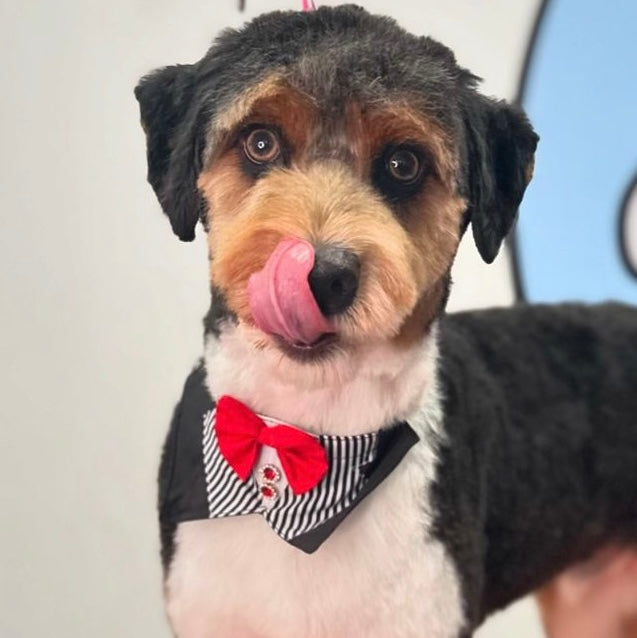 This 4 pack of White and Black Striped Big Boy Bibs makes dog grooming a breeze. With a stretch adjustable elastic band that can fit neck sizes from 12 inches to 25 inches, these bibs are a versatile and practical accessory for any dog owner. Keep your furry friend stylish with these high-quality bibs.